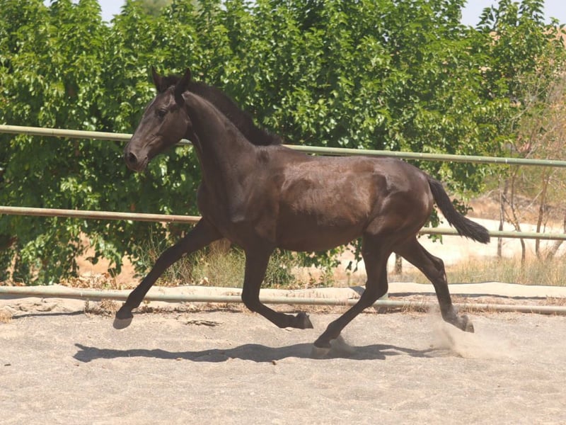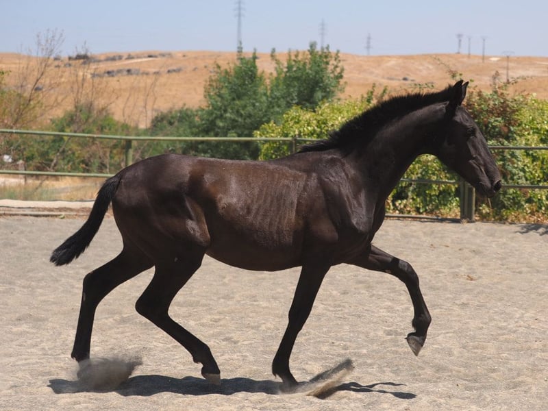 Wir präsentieren ein wunderschönes PRE-Fohlen, geboren Anfang 2024, mit einer Größe von ca. 150 cm. Seit seiner Geburt zeichnet es sich durch seine Eleganz und Präsenz aus und ist ein Exemplar, das Schönheit, Charakter und Potenzial für verschiedene Reitsportdisziplinen vereint. Sie ist die Tochter von Ucrania, einer Stute aus einer renommierten Linie, und ihr Vater ist Trovador de Valdeolivas, ein bekannter Hengst, der seinen Nachkommen Noblesse und Qualität verleiht. Der Vater dieses Fohlens ist Nazareno FS, ein schwarzes Pferd mit nachgewiesener Herkunft, das in der Welt der Dressur sehr geschätzt wird. Nazareno FS ist der Sohn von Coral, einer Elite-Stute des PRE, was eine hochkarätige genetische Linie mit Eigenschaften garantiert, die die Leistungsfähigkeit und Schönheit des Pferdes begünstigen. Die Kombination dieser Abstammungslinien macht das Fohlen zu einem vielversprechenden Pferd in Bezug auf Bewegung, Charakter und sportliches Potenzial. Was ihr Aussehen betrifft, so hat dieses Fohlen ein sehr attraktives Gesicht mit einem sanften und ausdrucksstarken Ausdruck, der seinen ruhigen und selbstbewussten Charakter widerspiegelt. Sein Hals ist gut proportioniert und seine allgemeine Struktur zeugt von einer guten Konstitution, was eine harmonische und vielversprechende Entwicklung erwarten lässt. Darüber hinaus sind seine Bewegungen elegant, ausdrucksstark und anmutig, was es ideal für Disziplinen wie Dressur oder sogar für die Zucht von Qualitätspferden macht. Zusammenfassend lässt sich sagen, dass diese PRE-Stute Schönheit, erstklassige Genetik und einen vielversprechenden Charakter vereint und somit eine einmalige Gelegenheit für alle darstellt, die ein Pferd mit großem Potenzial in der Welt des Pferdesports suchen.