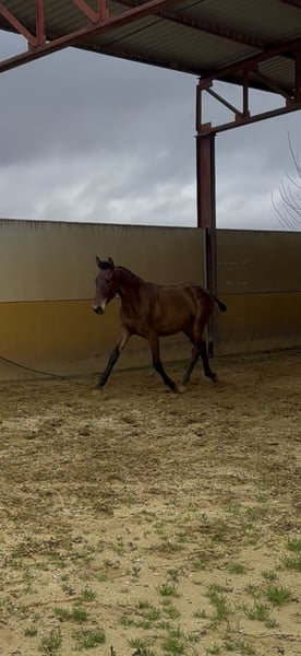 En venta extraordinaria potra PRE, nacida en marzo de 2025 (10 meses en la actualidad). De capa castaña y con una alzada de 152 cm. Criada en libertad. Carácter excepcional, es cariñosa y tranquila. Genética muy buena: - Su padre “Jabato” es un Valdeolivas de 1,76m hijo de Duiker con extraordinaria fuerza y movimientos. - Su madre “Listilla” es una yegua 100% Guardiola de 1,70m; es una yegua con muchísima raza y un físico y belleza difícil de encontrar. Va a ser una potra de gran alzada, con mucho hueso y belleza. Para más información, contacte sin compromiso.