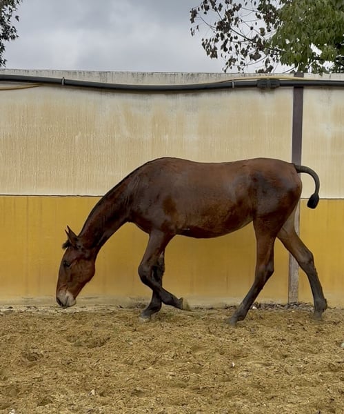 Zum Verkauf steht eine außergewöhnliche PRE-Fohlenstute, geboren im März 2025 (derzeit 10 Monate alt). Sie hat eine kastanienfarbene Fellfarbe und eine Schulterhöhe von 152 cm. Aufgewachsen in freier Herde. Ausgezeichnetes Temperament, liebevoll und ruhig. Sehr gute Abstammung: - Ihr Vater „Jabato“ ist ein Valdeolivas mit 1,76 m, Sohn von Duiker, mit außergewöhnlicher Kraft und Beweglichkeit. - Ihre Mutter „Listilla“ ist eine 100% Guardiola-Stute mit 1,70 m; sie ist eine äußerst edle Stute mit beeindruckender Rasse, Körperbau und Schönheit, die schwer zu finden sind. Sie wird eine große, elegante Stute mit viel Knochen und Schönheit werden. Für weitere Informationen stehen wir Ihnen gerne unverbindlich zur Verfügung.