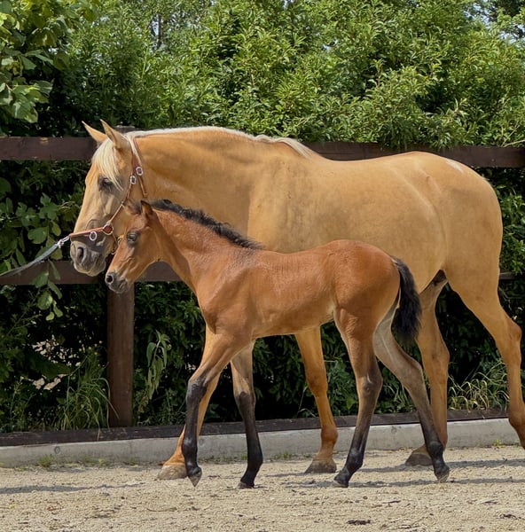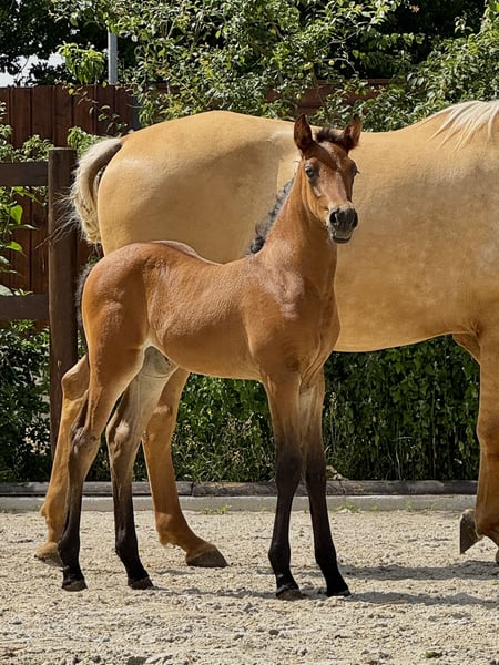 La nostra piccola Treidelhof Octava è venuta al mondo in un perfetto baio castano, completamente priva di segni bianchi. Si muove con molta energia, ritmo e si presenta molto equilibrata in tutte le andature. Octava si lascia mettere il capestro senza problemi e sta imparando a dare i suoi piccoli zoccoli. È curiosa e molto affettuosa verso le persone. La diamo solo in mani eccellenti. È un puledro davvero speciale. Per gli appassionati di PRE, è interessante sapere che dal lato materno porta il 70% di sangue Escalera e dal lato paterno discende dalla meravigliosa e famosa linea di Martinez Boloix. Per Octava, come per tutti i nostri cavalli in vendita, desideriamo innanzitutto una persona gentile e responsabile, che si prenda cura di sé e del cavallo con attenzione e pazienza. I nostri cavalli sono completamente integri e hanno avuto solo esperienze positive. Un ambiente affettuoso e premuroso è per noi fondamentale. Octava cresce, come tutti i nostri giovani cavalli, in un gruppo/famiglia. Vi preghiamo di contattarci solo personalmente. Non daremo mai informazioni sui nostri cavalli in modo anonimo. Desideriamo un contatto personale amichevole e siamo sempre disponibili ad aiutare su richiesta. Siamo anche molto felici di ricevere foto e racconti dei nostri ex cavalli.