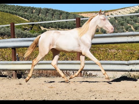 lieber Charakter, neugierig, verschmust, menschenbezogen, roh, steht mit anderen Fohlen draußen, gute Bewegungen und Abstammung, spezielle Farbe, PRE Perlino (CrCr) mit Papieren, Piro + Arteritis negativ, Abstammung: Alquilino Moya, Yeguada el Bayo, Señoria de Bariain, Bohorquez, Uropa Redondo VII und Ururopa Gaucho III sind qualifiziert www.elegante-andalusier.com