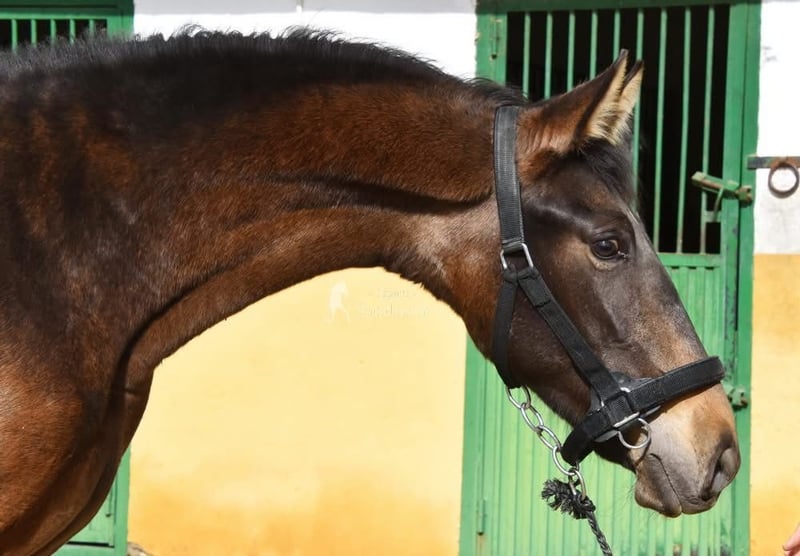 uroczy charakter, ciekawski, surowy, stoi na zewnątrz z matką i innymi klaczami i źrebiętami, wyjątkowe umaszczenie, PRE dun z papierami, dobry ruch i rodowód, rodowód: Alfredo Gala, Pablo Perez Jimenez, Castillo Villafranca, Andres Holgado Dianes, Uropa Mariscal de Torre i Ururopa Remache XIII są kwalifikowane. www.elegante-andalusier.com
