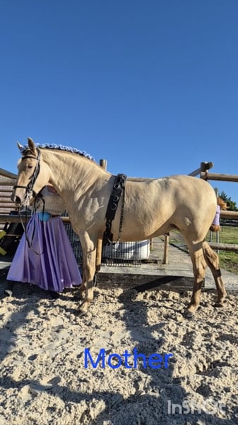Wyjątkowa klacz o złotym umaszczeniu na sprzedaż. Idealna budowa ciała, elegancki i pełen gracji ruch. Bardzo wysoka, barokowa, piękna pełnoprawna klacz jak na swój wiek. Urodzi się w sierpniu, będzie miała 2 lata. Doskonała genealogia. Dziadek Ismaeli z Yeguada Paco Marti, ojciec Romance Abad, jeden z najlepszych ogierów w całej Hiszpanii. Matczyny ojciec Antares de Narbon. To wyjątkowa okazja dla osób poszukujących wysokiej jakości klaczy hodowlanej. To gwarancja przyszłych wartościowych źrebiąt. Nie zwlekaj, ponieważ z wiekiem jej cena będzie szybko rosła.