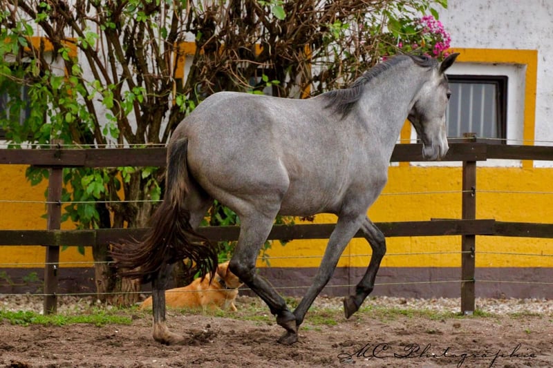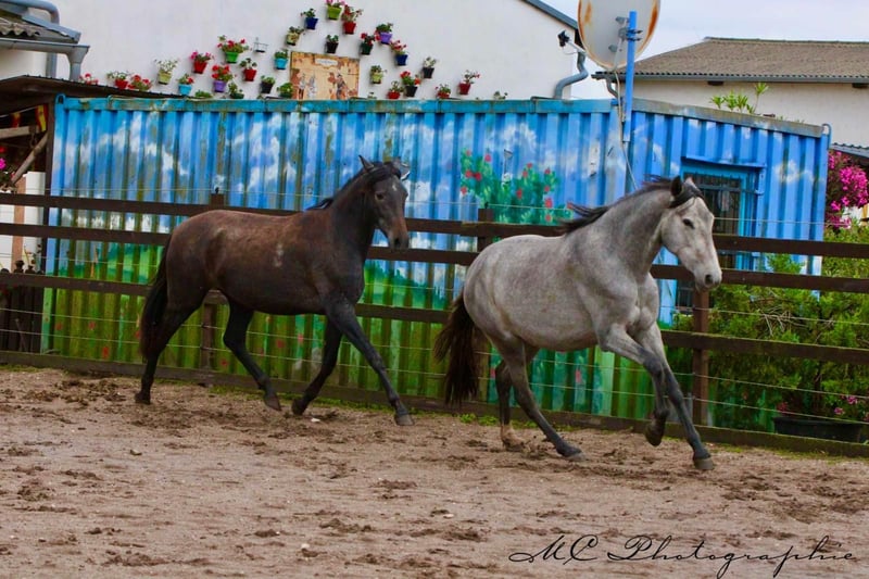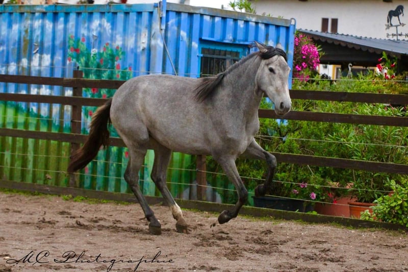 Anuncio de venta: Hermosa yegua PRE Se vende excepcional yegua PRE con año de nacimiento 2023. Es una impresionante yegua gris con una alzada final estimada de 165 cm. Esta joven yegua no sólo impresiona por su impresionante aspecto, sino también por sus excelentes aires básicos y siempre está dispuesta a aprender, atenta y sociable. Es un caballo con un gran potencial y más adelante sería ideal para un jinete de doma ambicioso. Si está interesado, esperamos sus noticias. Experimente usted mismo esta impresionante yegua y déjese convencer por su encanto y talento.
