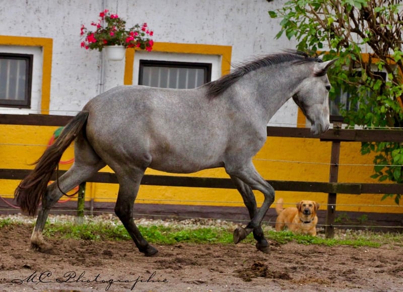 Verkaufsanzeige: Wunderschöne PRE Stute Zum Verkauf steht eine außergewöhnliche PRE Stute mit einem Geburtsjahr von 2023. Sie ist eine beeindruckende Schimmelstute mit einem geschätzen Endmaß von 165 cm. Diese junge Stute besticht nicht nur durch ihre atemberaubende Erscheinung, sondern auch durch ihre hervorragenden Grundganarten.Sie zeigt sich stets lernwillig, aufmerksam und sozial. Sie ist ein Pferd mit viel Potential und würde sich später ideal für einen ambitionierten Dressurreiter eignen. Bei Interesse freuen wir uns auf Ihre Kontaktaufnahme. Erleben Sie diese beeindruckende Stute selbst und lassen Sie sich von ihrem Charme und Talent überzeugen.
