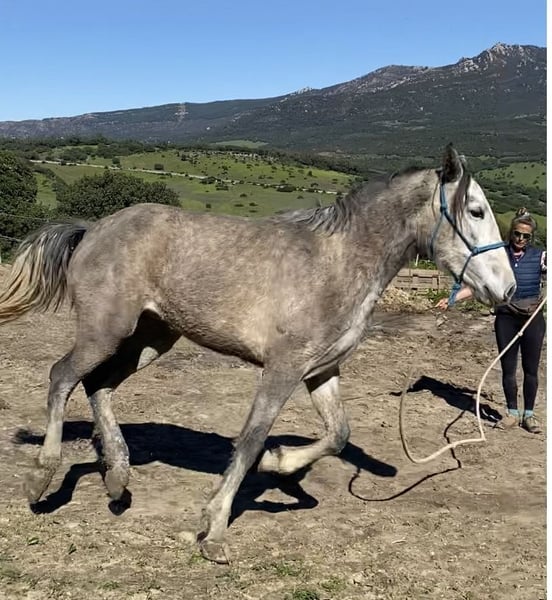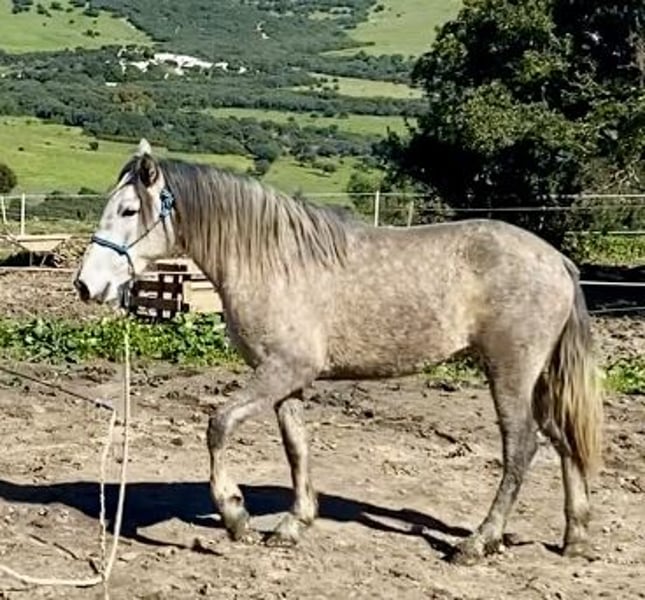 Eddi is a very sweet PRE mare, who will turn three years old in March 2026. She follows her handler everywhere. However, she doesn't receive the attention she needs within my herd. She is an extremely quick learner and is likely suitable for liberty work, classical dressage, and, due to her compact build, also for haute école. She is not a heavyweight horse, but rather delicate and suitable for a light rider. Serious inquiries are welcome via WhatsApp.