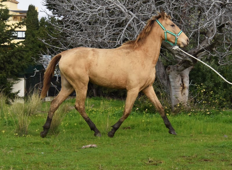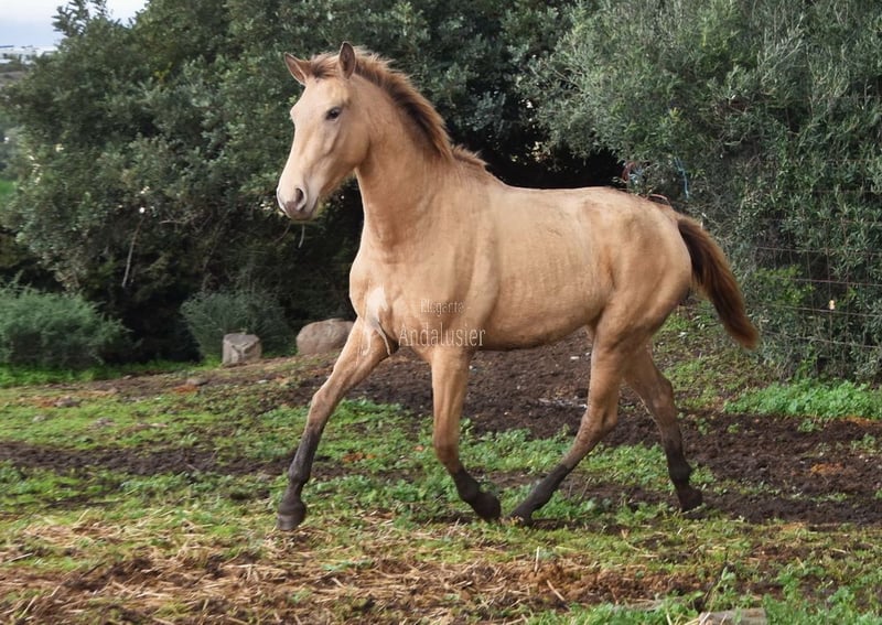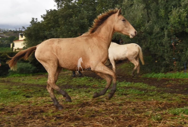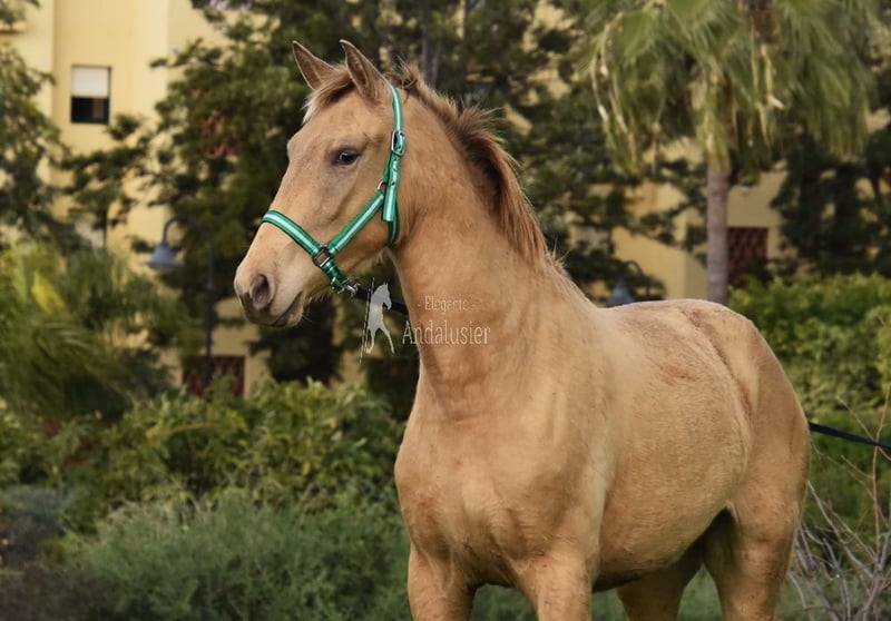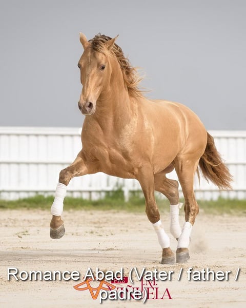 lieber Charakter, neugierig, menschenbezogen, roh, steht mit anderen Stuten draußen, spezielle Fabe, Isabela (PrlPrl) mit PRE Papieren, Abstammung: Yeguada San Benito Abad, Yeguada la Llana, las Medranas, Escalera, Bohorquez, Ururopa Gaucho III ist qualifiziert www.elegante-andalusier.com