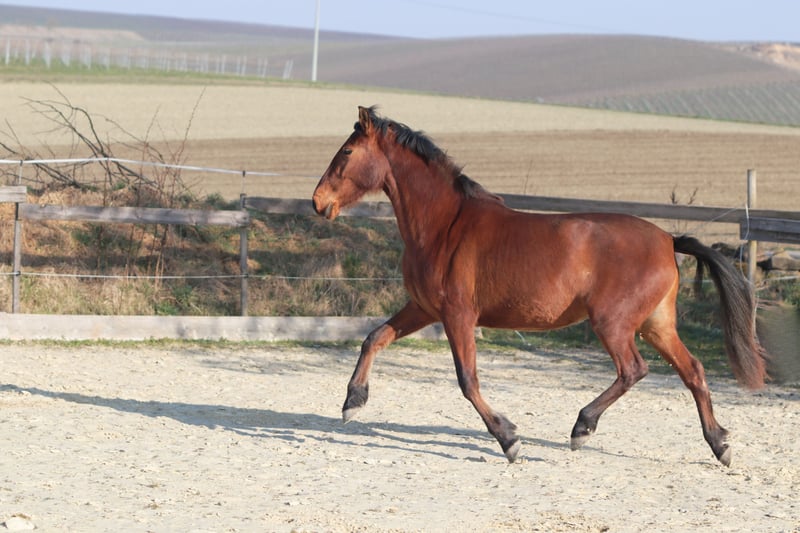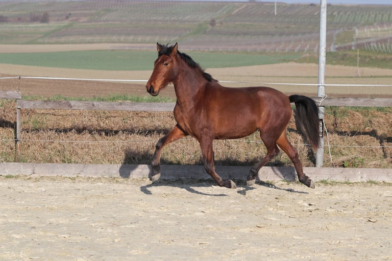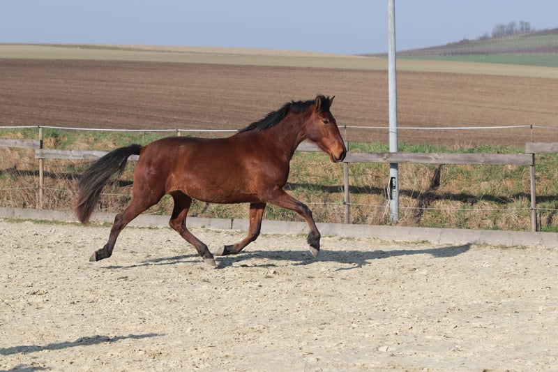 Hazaña ist bei uns im April 2023 geboren. Sie hat sich mittlerweile zu einer hübschen und selbstbewussten Jungstute entwickelt. Wir gehen bei ihr von einem Endstockmaß von ca. 1,63 m aus – derzeit ist sie eine schöne braune Stute, wobei wir nicht ausschließen können, dass sie nicht noch ausschimmeln wird (unwahrscheinlich aber möglich). Hazaña kam in der Herde zur Welt und lebt seitdem in Offenstallhaltung bei uns. Sie kennt sowohl Stuten als auch Wallache und ist in beiden Konstellationen ranghoch und selbstbewusst. Boxenhaltung kennt sie nicht. Dem Menschen gegenüber ist sie respektvoll und interessiert und lernt sehr schnell. Sie hört gut zu und bleibt ruhig, wenn sie etwas nicht verstanden hat. Zur Hektik hat sie bisher bei uns noch nicht geneigt. Sie kennt Spaziergänge allein und wurde auf dem Platz mit einfachen Übungen des Horsemanship beschäftigt, auch Freiarbeit mit Konzentration auf die Körpersprache kennt sie, ebenso ein bisschen Desensibilisierung auf Tüte und Plane. Kappzaum und Longe in der klassischen Verwendung hat sie im Schritt bisher nur wenige Male kennengelernt, wird hierbei aber weiter gefördert. Nun ist sie nach den schonenden Grundlagen bereit für etwas mehr. Hazaña hat eine gut Hufsubstanz und läuft bei uns barhuf. Sie weißt ein tolles Exterieur auf. Ihre Statur ist kräftig ohne dabei an Eleganz zu verlieren. Der Rücken ist nicht zu kurz und der Halsansatz rassetypisch. Sie hat schöne Bewegungen mit guter Knieaktion. Durch ihr ausgewogenes Interesse an der Arbeit können wir sie uns gut bei einem ambitionierten Freizeitreiter vorstellen, der Spaß an der klassischen Dressur oder dem Horsemanship hat, so dass sie sowohl körperlich als auch geistig gefördert wird. Ein kleiner Exkurs zur Abstammung: Ihr Vater ist ein reiner Cartujanohengst der Zucht Fernandez-Daza, dessen Vater wiederum der Calificado gekörte Hengst Revoltoso LXXXV der Yeguada de la Cartuja ist. Auch mütterlicherseits weist sie einiges an Cartujano-Blut auf (Hosco, Nervioso). Vater als auch Mutter stehen bei uns und können besichtig werden. Zum Abschluss nun ihr einziges Manko: Hazaña hat bei uns im letzten Sommer ein Ekzem entwickelt. Unser Stall liegt in Bachnähe und die damit verbundene Stechmücken- und Kribbelmückenplage hat ihr deutlich zugesetzt. Wie sie an einem anderen Standort reagiert wissen wir leider nicht, wir würden jedoch dazu raten, sie entweder mit Bauchschutz einzudecken oder täglich zu behandeln. Dieser Umstand wurde bei unserer Kalkulation berücksichtig. Sie ist ein wunderbares Pferd mit vielen tollen Eigenschaften, einem wertvollen Charakter und einem vielversprechenden Exterieur. Wem der Mehraufwand bezüglich der Ekzempflege nichts ausmacht, wird mit ihr einen tollen, treuen Weggefährten haben. Wir wünschen uns für sie einen Menschen, der ihre Qualitäten zu schätzen weiß. Einen Menschen, der sie liebevoll fördert, fordert und pflegt und ihr ein pferdegerechtes Zuhause bietet um mit ihr ganz tolle Momente zu erleben. Sie wird mit „Ihrem Menschen“ ein tolles Team abgeben. Unsere Seite: www.pre-loslobos.de