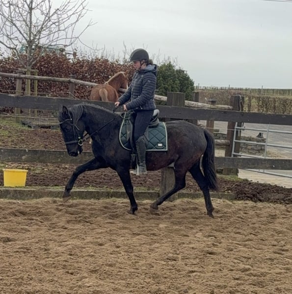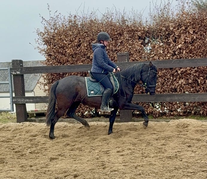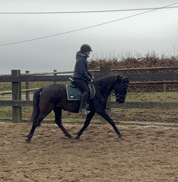 Zum Verkauf steht eine 4 Jahre alte, etwa 153cm große PRE Stute mit voller Abstammung. Sie wurde letztes Jahr bei uns angeritten und zeigt sich nun schon sehr schön unter dem Sattel. Sie geht leicht in Anlehnung und ist brav in allen Gangarten. Einen kleinen Sprung macht sie auch bereits ohne Probleme. Dies kann natürlich noch weiter gefördert werden. Auch im Gelände zeigte sie sich bisher immer brav, cool und gute händelbar. Sie lebt im Offenstall und ist absolut verträglich. Die Box kennt sie aber auch. Wer ein tollen Partner für Sport oder Freizeit sucht, ist bei ihr genau richtig. Krankheiten oder Allergien sind nicht bekannt. Eine AKU darf gerne gemacht werden. Für das Probereiten, Vorreiten oder anderes Ausprobieren des Pferdes berechnen wir 35€. Beim Kauf wird dies gutgeschrieben. Gerne anrufen oder eine Nachricht senden 0157 36803742 Alle Angaben ohne Gewähr, Preisänderungen vorbehalten, Transport möglich, Onlinekauf möglich