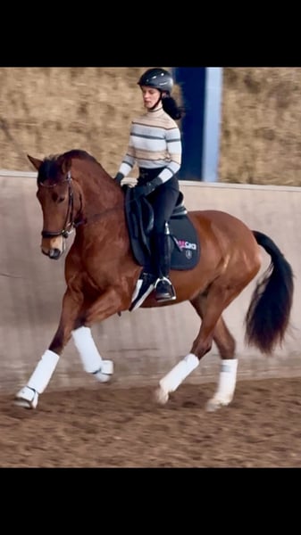 Hier reift ein ganz besonderes Juwel heran, das keine Wünsche offen lässt: ⚜️ Charakter: sehr menschenbezogen, anhänglich, verschmust. Zudem stets in sich ruhend und unerschrocken, auch im Gelände. Mit sehr viel will to please ausgestattet versucht dieses Pferd Ihnen alles recht zu machen, im Umgang wie beim Reiten. ⚜️ Qualität: Mit 3 sehr guten Grundgangarten und toller Rittigkeit, eignet sich diese besondere Stute genauso für den Einsatz im Sport (insb. Dressur und Working Equitation) wie auch im Freizeitbereich. ⚜️ Genetik: alte PRE Linien, bis auf das 15 Jh. zurückgehend, mit viel wertvollem Kartäuserblut (—> sehr noble Charaktereigenschaften, Robustheit) ⚜️ Exterieur: Wunderschöne im Hengsttyp stehende Stute, mit ganz korrektem Fundament, ca 165, starke Hufe, bisher ohne Eisen. ⚜️ Ausbildungsstand: Sicher geritten in allen GGA, erste Lektionen begonnen, toll im Gelände zu reiten, sehr angenehm im Umgang. ✅ Gesund, robust, schmiede- und verladefromm! ➡️ Bei Bedarf bieten wir unseren Kunden eine Übergangszeit mit Beritt und Reitunterricht an. Melden Sie sich gerne jederzeit bei weiteren Fragen oder um ein persönliches Kennenlernen zu vereinbaren: 015202833968 ➡️ Beachten Sie bitte, dass wir zum Schutz unserer Pferde, für das Vorstellen und Probereiten eine Gebühr von 45€ berechnen. ➡️ Weitere Informationen finden Sie auch auf unseren Socialmedia Kanälen: Zum Insta-Profil: PREcaroPferde https://www.instagram.com/precaropferde?igsh=MThzaDBmNTNpdW1mMg%3D%3D&utm_source=qr Zum Facebook-Profil: Carolin Nesarajah https://www.facebook.com/share/1AyDKVaDnU/?mibextid=wwXIfr