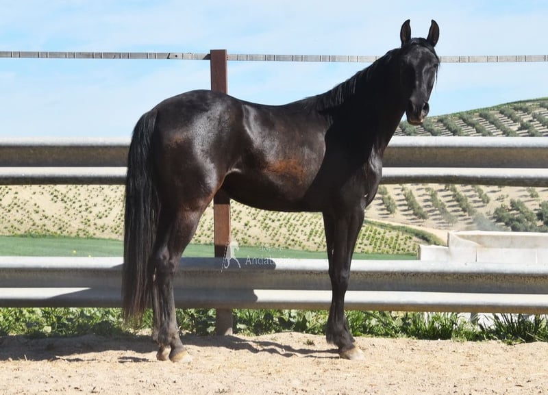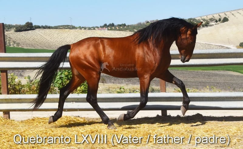 Caractère aimable, à l'état brut, vit dehors avec d'autres juments, bons mouvements et bonne lignée, Ascendance : Hnos Camacho Benitez, Gonzalo Valenzuela Ruiz, Escalera, l'arrière-arrière-grand-père Obcecado est qualifié www.elegante-andalusier.com