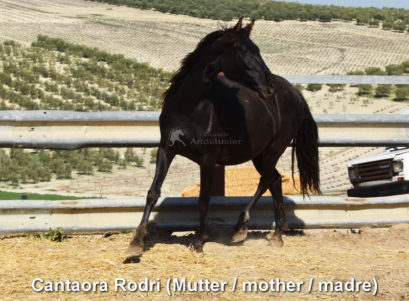 ładny charakter, surowa, stoi na zewnątrz z innymi klaczami, dobry ruch i rodowód, rodowód: Hnos Camacho Benitez, Gonzalo Valenzuela Ruiz, Escalera, Ururopa Obcecado jest kwalifikowany www.elegante-andalusier.com