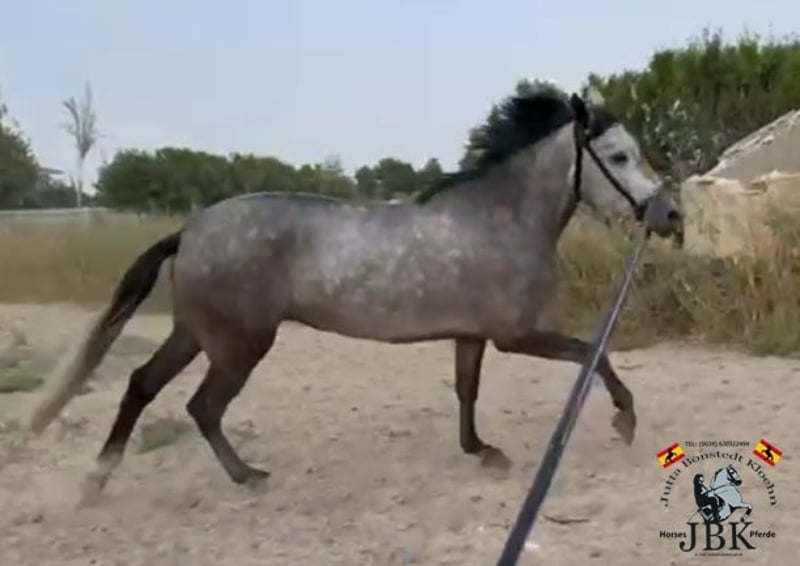 An impressive personality and excellent gaits define this PRE mare. Well-trained in all gaits, suitable for trail riding and road work, she is calm, confident, and very cooperative. Manzanita has no mare-like vices, is not bossy, and is friendly towards her herd mates and humans alike. An impeccable horse. She comes from top-quality bloodlines: her sire is the world champion Romero de Trujillo. Grandfather Engañoso IV is one of the few elite licensed stallions in PRE breeding. Her lineage is further complemented by lines from Granda Losada, Bohorquez, and Yeguada Militar. A lady with whom it will be a pleasure to continue working. Currently measures 1.61 meters.