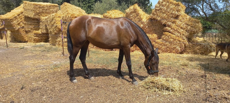 Chestnut PRE mare, 3 years old, from the year 2021, initiated in dressage, suitable for breeding. Daughter of Poeta de Susaeta. Excellent airs and great quality for dressage. For sale direct from owner.