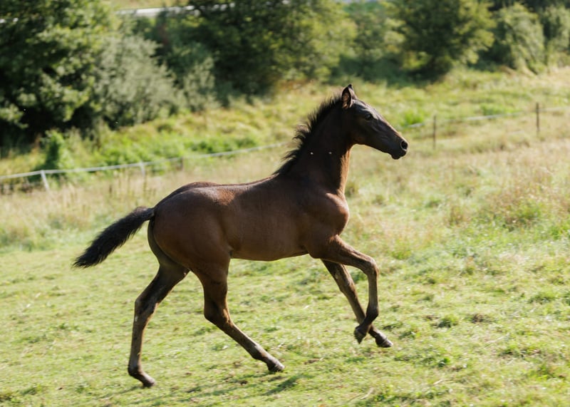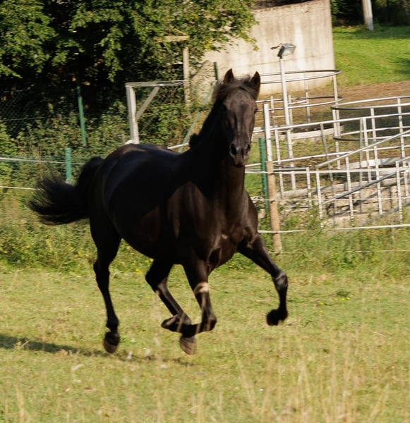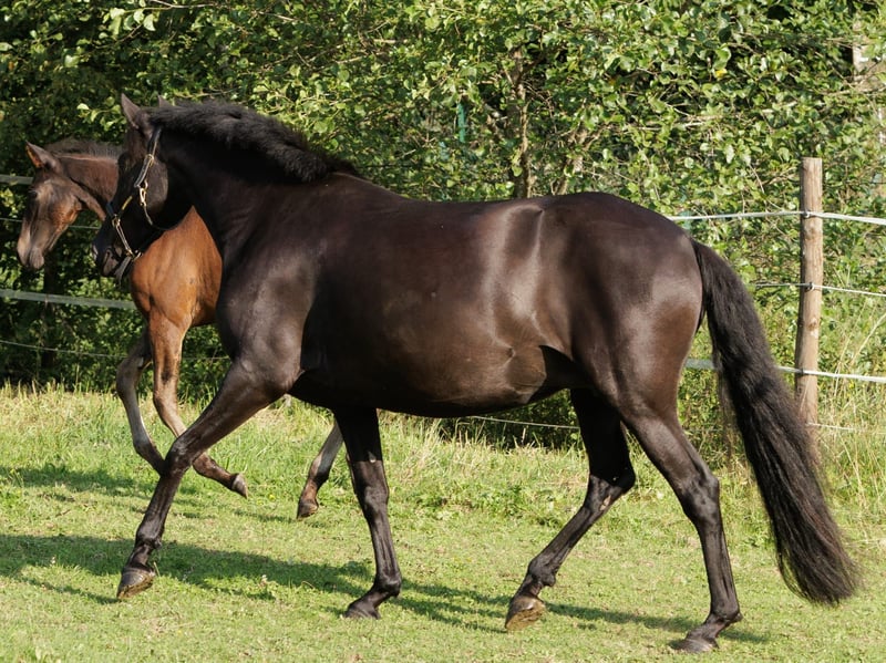 Acuarela - eine bildschöne Pura Raza Española Stute, geboren im Juni 2019, mit einem Stockmaß von ca. 158 cm. Sie präsentiert sich in der eleganten Rappfarbe mit einem korrekten Gebäude, gesunder Konstitution und einem ausgesprochen lieben Wesen. Acuarela wurde vor drei Jahren vom renommierten Züchter Antonio Macias aus Spanien importiert und ausschließlich in der Zucht eingesetzt. Sie ist halfterführig, kennt Offenstallhaltung sowie Weidegang und zeigt sich stets freundlich, menschenbezogen und verschmust. Im täglichen Umgang ist sie unkompliziert, brav beim Tierarzt, regelmäßig entwurmt und geimpft, ihre Zähne wurden gemacht. Die Stute hat sich bereits als hervorragende Mutter bewährt. Bisher hat sie zwei Fohlen problemlos zur Welt gebracht. Ihr erstes Fohlen ist besonders gelungen und soll voraussichtlich ab dem nächsten Jahr als Deckhengst eingesetzt werden. Aktuell führt sie ein herausragendes Hengstfohlen von Ocalzo CEN bei Fuß, das ebenfalls zum Verkauf steht. Acuarela ist tragend für 2026 von dem Hengst Hampon XII. Sie vererbt sich größer und bringt barocke Typen mit schwungvollen, dressurgeeigneten Bewegungen. Aufgrund ihrer Abstammung und ihrer bisherigen Fohlen ist sie eine echte Bereicherung für jede Zucht. Mit ihrem ausgeglichenen Charakter, ihrer Aufgeschlossenheit und ihrem einwandfreien Exterieur bietet sie beste Voraussetzungen für den weiteren Zuchteinsatz. Sie ist unverbraucht, da sie bisher nicht geritten wurde und zeigt sich stets brav, freundlich und umgänglich. Acuarela AMC ist eine PRE-Stute, die durch Qualität, Erscheinung und Zuchtwert überzeugt.