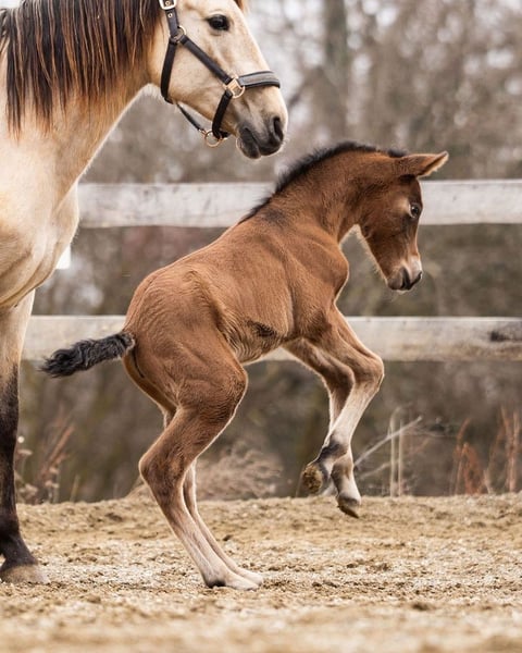 lieber Charakter, verschmust, verspielt, roh, steht mit ihrer Mutter und anderen Stuten und Fohlen draußen, barock, Braun mit Pearl-Gen, STANDORT ÖSTERREICH, Abstammung: Paco Marti, Hnos Camacho Benitez, Yeguada la Llana, Antonio Cuenca Delgado, Ururopa Gaucho III ist qualifiziert www.elegante-andalusier.com