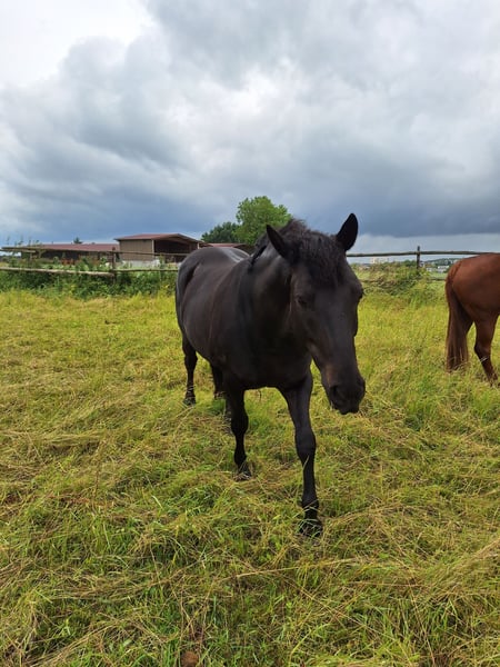 Spanish Crossbreed 10 years old Handled and well-mannered, affectionate in nature Unfortunately has a thickened suspensory ligament on the left front leg, but can be ridden and shows potential No restrictions Due to a long break, training should be resumed gradually; he is sound and free of lameness Trial riding possible under certain conditions Very willing to learn Lunged and basic ridden training Friendly in handling Barefoot Equipment included Purely a leisure horse Price negotiable If interested or for further information, I am happy to assist. I look forward to hearing from you!