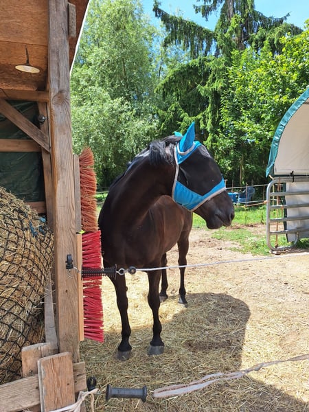 Spaans-Mix 10 jaar Onder het zadel, Aanhankelijk en vriendelijk in de omgang, Heeft helaas een verdikt ondersteuningsbandje aan de linker voorbeen, maar kan bereden worden en heeft potentieel. Geen beperkingen. Omdat hij lange tijd niet gereden is, moet je langzaam weer met hem beginnen te werken; hij is kreupelvrij. Proefrijden is onder voorwaarden mogelijk. Hij is zeer leergierig. Longeer- en basisgereden. Vriendelijk in de omgang. Ongeleed. Bijpassende uitrusting aanwezig. Louter recreatief paard. Plaats gaat voor prijs. Bij interesse of voor meer informatie sta ik graag voor u klaar. Ik kijk uit naar uw contact!