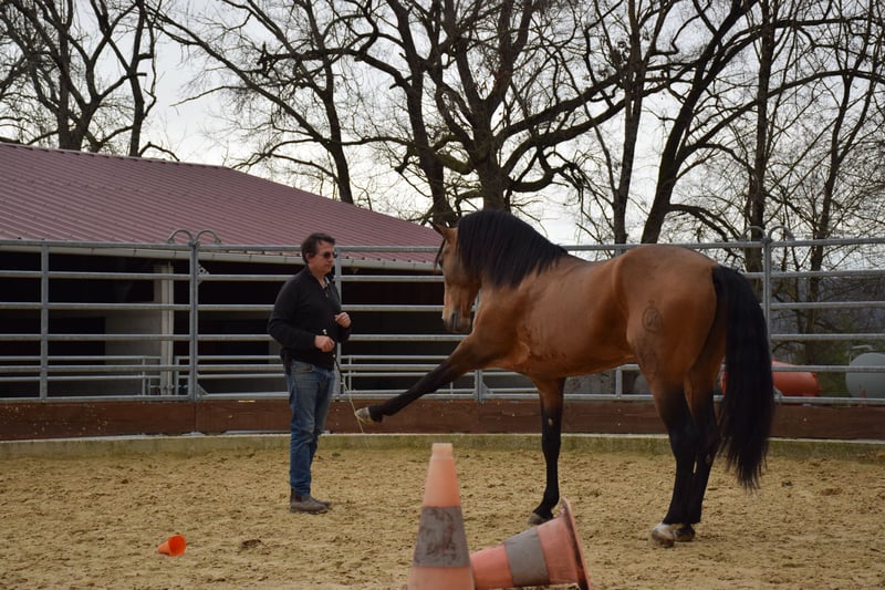 Dolar JC is 10 years old and stands at 1.63m. His IGG was evaluated at 107% during morphology competitions in Spain. His mother comes from the famous Peralta breeding! Beyond his origins, Dolar shows true ease under saddle. Very well trained, he masters the movements of high school: two-time changes, passage, piaffe, Spanish walk, and the approach to the pirouette. He is a sensitive and endearing horse, generous under saddle and curious about interaction. The ideal sport partner for a rider looking to advance their dressage while developing an exclusive relationship with this horse, who is as fine and refined as he is expressive. His radiographic report is perfect and available upon request. Like all horses joining Alegria, Dolar is educated according to the Complicity Relationship® curriculum, our educational method that guarantees safety and serenity. It is possible to reserve him now and continue his development with our support at the stud farm or through our online training. Price upon request, variable depending on the horse's education.