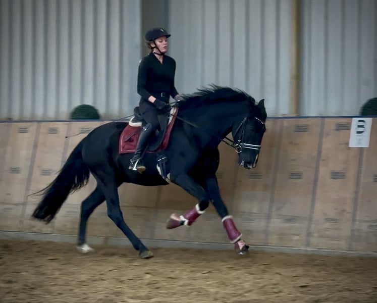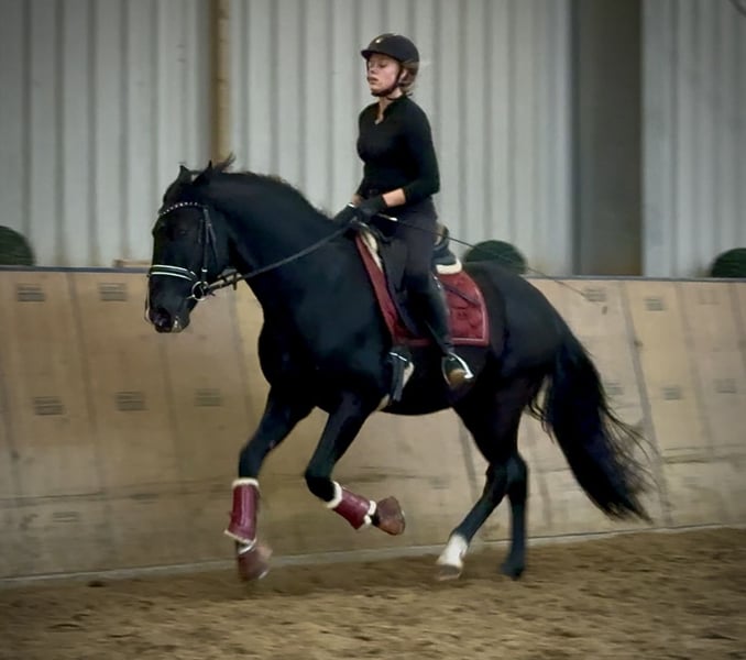 Name: Zahareno VIII Breed: P.R.E. (Pure Spanish Horse) Gender: Gelding Date of Birth: December 24, 2010 Age: 15 years Height: 15.1 hh Color: Black (Rappe) Pedigree: Available Temperament: Reliable, people-oriented, curious, intelligent, brave Training/ suitability: ridden, leisure riding, dressage, show jumping, working equitation Trail Experience: dependable, confident, comfortable alone and in a group Health: dewormed, vaccinated, barefoot, teeth checked, osteopathically treated Stabling: box stall, open stable Special Features: very comfortable rider, shoe and loading friendly, gelding herd, suitable for children, school horse Please note that these characteristics are based on our personal assessment and do not constitute guaranteed traits. Price: €6,500 (gross price) Have we piqued your interest? To give you a better impression of Zahareno, we would be happy to send you a video of him riding. Of course, we are available for a detailed description of the horse, personal consultation, and to answer all your questions via phone. Please feel free to contact us anytime via WhatsApp or call us at: +49 151 19487595 Our calling hours are daily from 7:00 AM to 1:30 PM and again from 8:00 PM. We look forward to hearing from you! A clinical or radiological purchase examination can be carried out by your veterinarian of choice. Zahareno can be safely and comfortably delivered to his new home. We take care of all preparations and transportation so that your new horse arrives stress-free, well cared for, insured, and in good health. Currently, we offer a carefully selected variety of horses for sale. With us, you are sure to find your dream horse. Feel free to visit us on our homepage: www.marvinsroyalhorses.de. Dear customers, we are happy to introduce you to our horses and offer grooming, tacking, lunging, ground work, and trial riding in the riding hall, on the arena, or in the field to get to know your new family member better. This costs €40 for one horse and €30 for each additional horse and will be refunded upon purchase. Our address: Ferdinand Grube 50 53577 Neustadt-Wied Google Maps: marvinsroyalhorses
