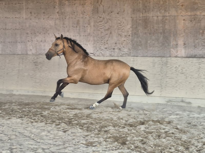 Verkaufe PRE-Wallach Zum Verkauf steht ein eleganter PRE-Wallach, in der seltenen Bayo Farbe, geboren im Jahr 2011. Mit einem Stockmaß von 167 cm vereint er Größe und Präsenz. Das Pferd ist ideal für Dressurbegeisterte, Working Equitation, Doma Vaquera....die ein zuverlässigen und talentierten Partner suchen. Seine ruhige Art im Umgang und sein ausgeglichenes Wesen, aber mit sehr viel GO unter dem Reiter, machen ihn zu einem tollen Begleiter im täglichen Training und der Arbeit, er braucht einen erfahrenen Reiter der ihn in seinem Temperament unterm Reiter zu schätzen weiß. Bei Interesse und für weitere Informationen stehe ich gerne zur Verfügung. Ein Besichtigungstermin ist nach Vereinbarung möglich. Er ist kein Mix! Reinrassiger PRE mit Papiere!