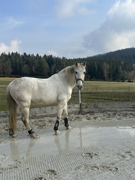 Schweren Herzens trenne ich mich von meinem 17 Jährigen Spanier Wallach Lobato. Er besitzt volle Ancce Papiere. Er ist am 20.06.2008 geboren und ca 2015 nach Deutschland gekommen. Da kam er dann in Beritt und nach ein paar Monaten zur Vorbesitzerin. Seit 2024 ist er nun in meinem Besitz. Löbi ist ein wahrer Allrounder. Man kann mit ihm alleine sowie in der Gruppe ins Gelände. Zirkuslektionen sowie Bodenarbeit liebt er. Auch in der Dressur und im Springen ist er gut ausgebildet, bei der Vorbesitzerin ist er auch regelmäßig auf Turnier gelaufen. Vom Boden, im Umgang wie auch beim Ausreiten ist er von jederman easy zu händeln. Auch für absolute Anfänger geeignet. In der Dressur sowie im Springen benötigt er allerdings einen konsequenten/ bzw. erfahrenen Reiter bzw mit Unterstützung vom Boden, da er da genau weiß wer oben sitzt. Er wird niemals böse. Kein Steigen, Bocken, Schlagen usw. jedoch gehört er eher zur gemütlichen Sorte und braucht somit jemanden der ihn bewusst fordert. Kennt Bauernhof, Baustelle, Hänger, usw. Er wird regelmäßig geimpft, Zähne kontrolliert und vom Physio behandelt. Ist Sommer sowie Winter barhuf und wird ca alle 8-10 Wochen vom Hufschmied ausgeschnitten. Aktuell steht er in Boxenhaltung mit täglichem Weidegang. Er ist rangniedrig und versteht sich super mit anderen Pferden. Kann sofern man sich preislich einig wird mit vollständigem Zubehör (inkl. angepasstem Prestige Dressursattel, Trense, Kandare, Putzzeug, Decken, usw.) erworben werden. Wird ausschließlich in beste Hände und nur wenn wirklich alles passt abgegeben. Für das Probereiten wird eine Entschädigung von 30€ einbehalten, um den Reittourismus zu vermeiden. Dies wird selbstverständlich bei Kauf gegengerechnet.