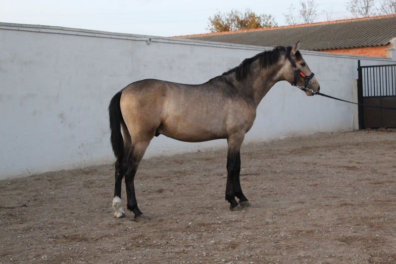 Se vende potro espectacular de 20 meses de edad. Pura raza español, de capa baya del hierro de Paco Martí. Muy noble y de buenos orígenes. Con buenos movimientos ideal para la doma. Carácter equilibrado. Nivel de adiestramiento acorde a su edad. Libre de piro.
