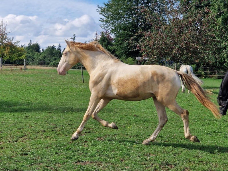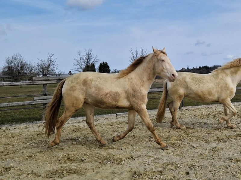 With his strong build, cream-colored coat, golden legs, and olive-green eyes, he captures everyone's attention. Lamperon was born on January 21, 2023, and has been raised with care. He has long legs, a short back, a beautiful topline, and above-average basic gaits with high, expansive movement. Last year, we had a breeder's check performed, and all 14 X-ray images showed no findings. Lampi is accustomed to regular handling such as haltering, grooming, washing, and hoof care, but is still unbroken. Of course, he has been regularly dewormed and tetanus vaccinated. If you are looking for a healthy, well-maintained young horse, Lampi will bring you great joy, fun, and success in all disciplines of classical riding. ANCCE papers. Private sale.