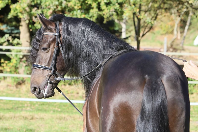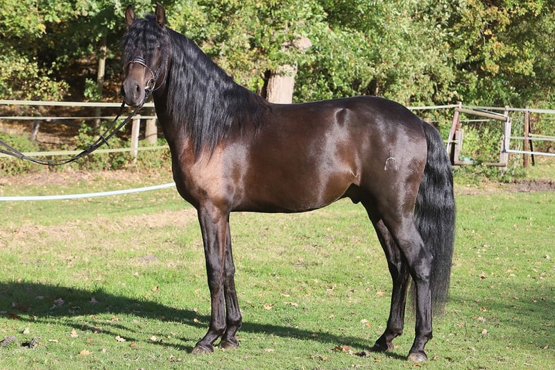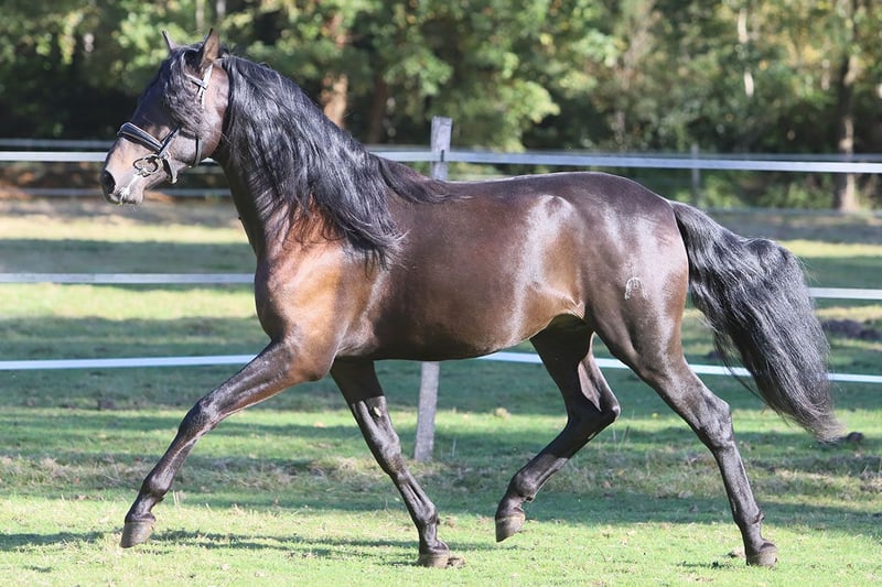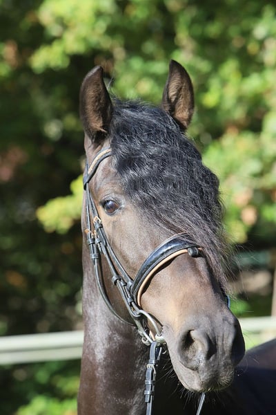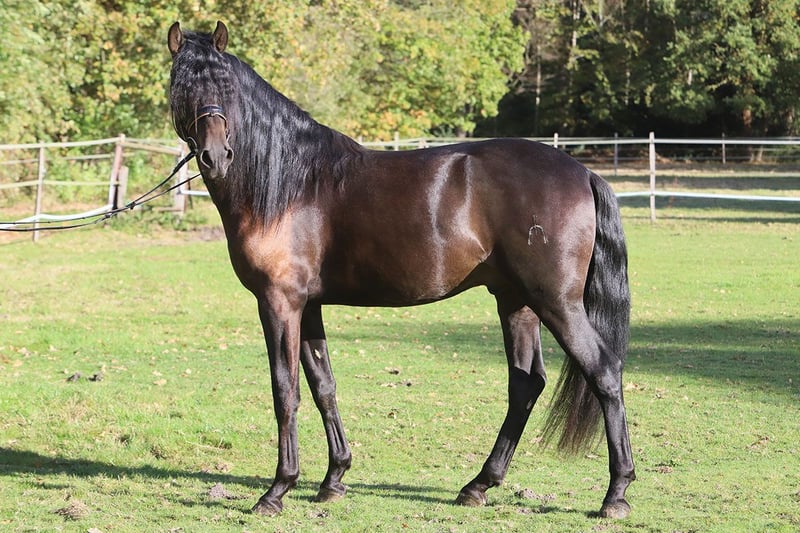 Dieser erst 3-jährige PRE-Wallach besticht durch sein ausgeglichenes Wesen, seine natürliche Präsenz und seine liebenswürdige Art. Schon sein Name verrät, was ihn ausmacht: Encanto – „Zauber“ oder „Charme“ – und genau das verkörpert er in jeder Hinsicht. Mit seinem typvollen Exterieur, der langen, dichten Mähne und seinem ausdrucksstarken Blick erfüllt er das Bild des klassischen Pura Raza Española. Sein Charakter ist dabei ebenso beeindruckend wie seine Erscheinung: menschenbezogen, freundlich, aufmerksam und stets bemüht, alles richtig zu machen. Encanto ist seit kurzer Zeit schonend angeritten und zeigt sich unter dem Sattel willig, konzentriert und überaus lernfreudig. Er bewegt sich taktsicher in Schritt, Trab und Galopp und lässt bereits jetzt sein gutes Gleichgewicht und seine natürliche Versammlungsbereitschaft erkennen – beste Voraussetzungen für eine Karriere in Dressur, Working Equitation oder als edles Freizeitpferd. Seine Abstammung vereint bewährte Linien mit bester spanischer Zuchttradition: Väterlicherseits ist Encanto von der Yeguada Militar geprägt, mit der bedeutenden Linie des Remache, bekannt für Rittigkeit, Kraft und Adel. Mütterlicherseits führt er Escalera-, Guardiola- und Terry-Blut, das für Typ, Ausdruck und hervorragendes Temperament steht. Ein junger Wallach, der alle Anlagen mitbringt, um sich zu einem echten Herzenspferd und sportlichen Partner zu entwickeln – ein Pferd mit Verstand, Schönheit und Seele. Encanto – ein Name, der Programm ist.