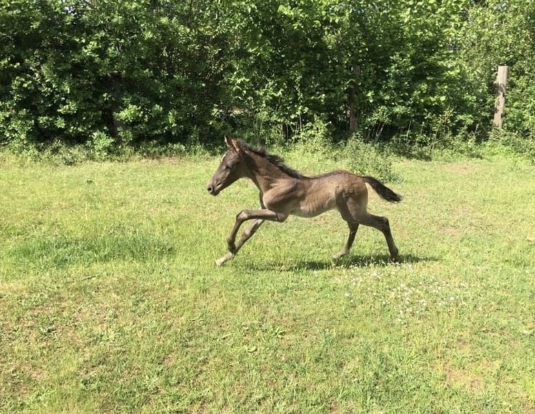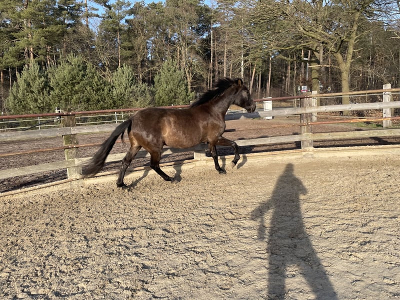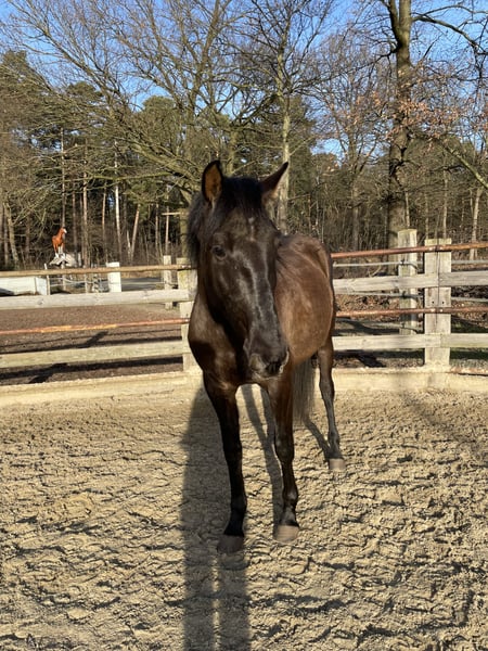 Schwerensherzens biete ich meinen selbstgezogenen 4-jährigen PRE-Wallach zum Verkauf an. Cisco ist im Mai 2022 geboren und hat als Fohlen auf meinem Schoß geschlafen, dementsprechend ist er unglaublich menschenbezogen. Als Fohlen ist er mit seiner Mutter einfach mitgelaufen, und hat so „beiläufig“ Kontakt zum Putzen, Anhänger, Spazieren… etc. gehabt. Er wurde ausschließlich im Offenstall gehalten: das erste Lebensjahr hat er in einer gemischten Herde verbracht. Mit einem Jahr ging er in eine Hengstaufzuchtherde für 1,5 Jahre. Nun steht er seit einem Jahr in einer Wallachherde. Er war stets ein Mittelglied und hat sich unkompliziert in eine Herde eingefügt. Cisco ist super lieb und menschenbezogen, er ist immer der Erste, der ankommt, wenn man den Auslauf betritt. Er ist ausserdem unglaublich entspannt und gelassen. Natürlich bleibt er ein junges Pferd, er kann sich auch mal erschrecken, aber er ist von Grund auf entspannt und vertraut auf seinen Menschen. Er hat keinerlei schlechte Manieren wie Beißen, Steigen oder Bocken! Kurzum: er wird mal ein ganz tolles Verlasspferd sein, der mit einem durch dick und dünn geht! Leider habe ich längerfristig nicht die Zeit, ihm die Aufmerksamkeit zu geben, die er braucht und verdient. Daher muss ich für ihn, aus Liebe zu ihm, doch ein neues Zuhause suchen. Er hat schon einiges Kennengelernt: wir waren viel spazieren, Hunde, Katzen, Hühner, Schafe, Feldsprenger, Fahrradfahrer, Autos sind kein Problem. Auf dem Trail hat er sich auch von der besten Seite gezeigt. Aktuell ist er bereits in allen Gangarten anlongiert. Anhänger und Schmied sind kein Problem! Wichtig: er ist noch recht grün und braucht Zeit, bevor er eingeritten wird. So hat man aber als zukünftigen Besitzer die Chance, mit ihm auf diese besondere Art zusammenzuwachsen, die die Ausbildung des eigenen Pferdes mit sich bringt. Schätzungsweise wird er ca. 165cm groß. Farbe ist mutmaßlich smokey black (schwarz + Aufhellung - Vater Rappe, Mutter Falbe). ANCCE Papiere vorhanden Fragen werden gerne beantwortet!