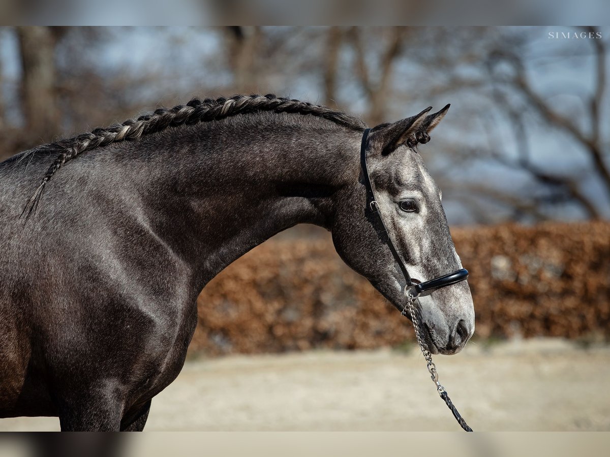 Macetero is a stunning 4-year-old Pure Spanish Horse (Pura Raza Española) gelding, approximately 16.1 hh, born and raised under the Andalusian sun. Since autumn, he has been gently and traditionally trained in Austria and has been ridden for about two months by a sensitive Austrian equestrian. Despite his young age, Macetero already impresses with remarkable mental strength and calmness. He is an absolutely reliable horse, very steady-nerved, and immediately instills confidence in his rider. Being on his back simply feels safe and secure :-) Highlights: - Very affectionate and people-oriented - Completely well-behaved in handling - Naturally farrier- and loading-trainable - Completely fearless and resilient - Easy to handle in daily routines - Very comfortable in the saddle - Sensitive to riding and eager to learn Thanks to his youth, Macetero is also ideally suited for nervous or inexperienced riders seeking an honest, dependable horse with potential. Under saddle, he demonstrates modern basic gaits with a beautiful natural balance, a pleasant forward movement, and exceptional rideability! A horse that makes you feel: "You think — and he makes it happen." The needle in the haystack every rider is looking for ❤️! His coat is currently developing into a beautiful dark golden dapple gray, promising an even more elegant appearance as he matures. He also has excellent radiographs from 2025 and is a treasure both alone and in a group on pasture. He is the perfect horse for dressage, classical work, or upscale recreational riding! An extraordinary PRE gelding for riders seeking a safe, honest horse with quality and future potential. Further information and videos available upon request.