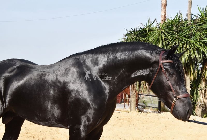 Gentle character, playful, robust, tall, baroque type. Has undergone X-rays. Pedigree: Antonio Cuenca Delgado, Escalera, Bohorquez. Great-grandfather Manzanillo XII is licensed. www.elegante-andalusier.com