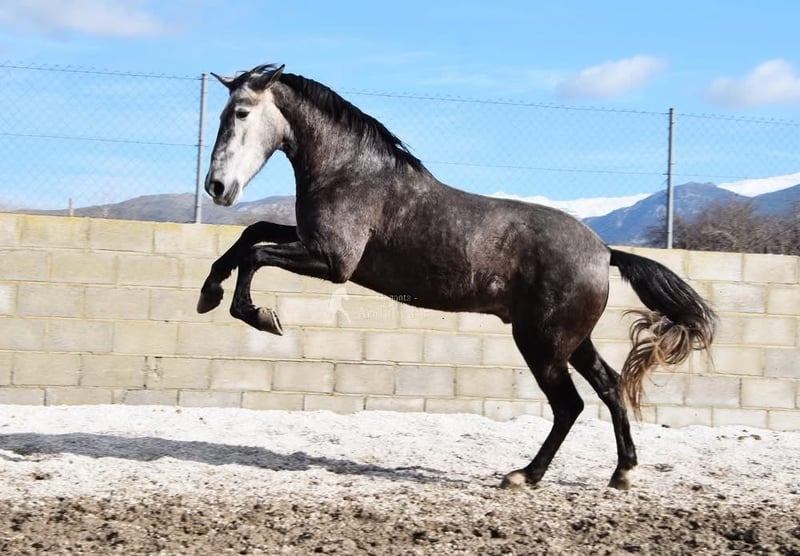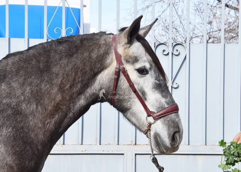 lieber Charakter, in den Grundgangarten geritten und Gelände, springt, etwas Spanischer Schritt und Piaffe, hat bereits Röntgen und ist Piroplasmose negativ, Abstammung: Yeguada Sierra Morena, Jose Enrique Muños de Albelda www.elegante-andalusier.com