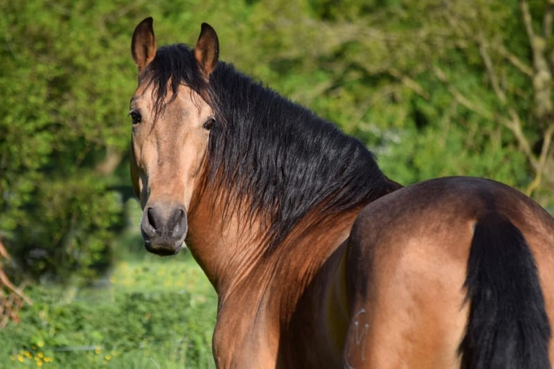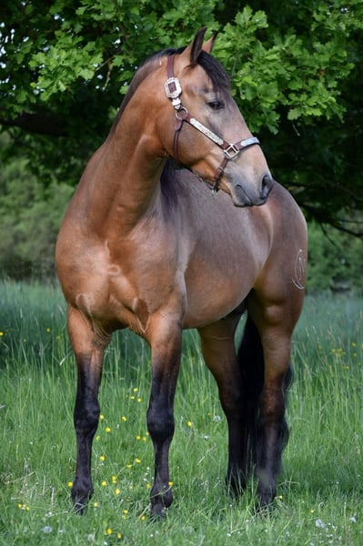 Stunning PRE gelding, born February 2021, in the rare color Buckskin/Falbe. He is very baroque in build, extremely compact, and has a correct conformation. In summer, his coat shines with a beautiful golden hue – truly eye-catching. With an approximate height of 16.1 hh, he provides excellent coverage for his rider and impresses with his striking appearance. The gelding is regularly dewormed and vaccinated and is accustomed to box and paddock turnout. Character-wise, he is an absolute treasure: friendly, affectionate, playful, well-mannered, brave, curious, open-minded, and very attached. Under saddle, he is incredibly comfortable to sit, demonstrates good basic gaits, and always works with motivation and eagerness to learn. He has a solid foundation of training: he walks all basic gaits, performs lateral movements, and can be ridden backward. On the ground, he also shows great talent – piaffe and Spanish walk are achievable. Groundwork is very familiar to him. A truly beautiful, talented horse for a motivated rider who enjoys working together and nurturing his potential.