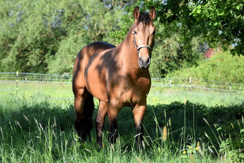 Wunderschöner PRE-Wallach, geb. 2.2021, in der seltenen Farbe Buckskin/Falbe. Er ist sehr barock gebaut, extrem kompakt und besitzt ein korrektes Gebäude. Im Sommer glänzt sein Fell goldfarben - ein echter Blickfang. Mit einem Stockmaß von ca. 158 cm deckt er seinen Reiter hervorragend ab und überzeugt mit bildhübscher Erscheinung. Der Wallach ist regelmäßig entwurmt und geimpft und kennt Boxenhaltung mit Paddock. Charakterlich ist er ein absoluter Schatz: menschenbezogen, verschmust, verspielt, freundlich, artig, unerschrocken, neugierig, aufgeschlossen und sehr anhänglich. Unter dem Sattel ist er mega bequem zu sitzen, zeigt schöne Grundgangarten und arbeitet stets motiviert und lernwillig mit. Er besitzt eine solide Basisausbildung: Er geht alle Grundgangarten, beherrscht Seitengänge und Rückwärtsrichten. Am Boden zeigt er ebenfalls viel Talent - Kompliment und spanischer Schritt sind abrufbar. Bodenarbeit ist ihm bestens vertraut. Ein traumhaft schönes, talentiertes Pferd für einen motivierten Reiter, der Freude daran hat, gemeinsam weiterzuarbeiten und ihn zu fördern.