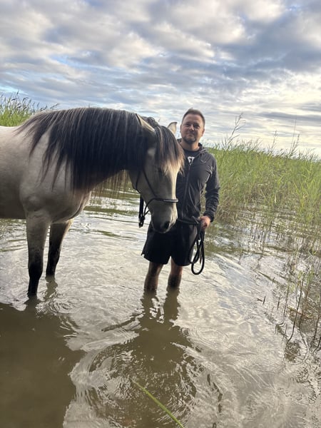 6-year-old gelding in a particularly light bay color. In summer, he has cream-colored coat, in winter, he is white. He is trained in the basics, with beginnings in lateral movements and simple flying changes. Spanish walk from the saddle as well as from the ground. There is potential for further development, but there is a lack of time to currently promote it. He is not suitable for beginners or weak riders. Young girls with talent and riding skills are no problem. He has character and a day-dependent "go." He covers ground very well, as he already stands strongly in the Baroque style. Rider - 184 cm tall. Imported at 1 year old. Contains military and Cartujan lines. No allergies, no surgeries... Equipment is available for purchase. He masters circus elements... beginnings of piaffe, bow, lateral movements at trot... You can see his pedigree at the following link: https://www.lgancce.com/lgpreancce/asp-publico/arbolGenealogicoPRE/ConsultarArbolGenealogicoPRE.aspx?ID=AxawRK0rW/U= He stands on the trailer like a pro, although he sometimes lacks routine when loading. He stands calmly and quietly for the veterinarian and farrier, but has always been barefoot until now. He goes out alone into the field, is familiar with tractors, cars, dogs, etc. I charge a fee of €25 per ride, which can be deducted from the purchase price.