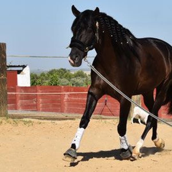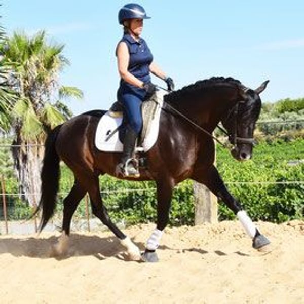 **À vendre : Hongre PRE Black Beauty** À vendre, un magnifique hongre PRE, né en 2019. Avec une taille de 1,62 m et sa belle robe noir-brun, il attire tous les regards. Ce charmant hongre est idéal pour les activités de loisirs. Il est bien maniable et se montre toujours coopératif tant à la monte qu'en main. Son caractère amical en fait un partenaire idéal pour les amoureux des chevaux de tous niveaux. Il est bien éduqué, a une solide formation de base et est prêt à vivre de nouvelles aventures avec vous. Que ce soit pour des balades en pleine nature ou des moments de détente à l'écurie, ce hongre PRE vous apportera beaucoup de joie. Pintor a également été formé à la conduite (en simple et en paire). Des vidéos peuvent être envoyées sur demande - il suffit d'envoyer un message WhatsApp. Pour toute question ou intérêt, n'hésitez pas à me contacter !