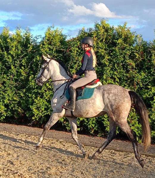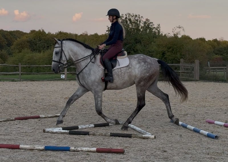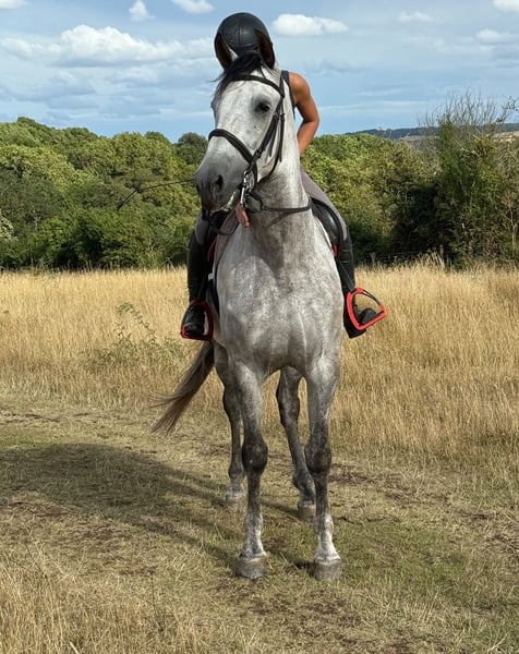He was imported from Spain earlier this year & has a super temperament, both under saddle and in the stable. He has plenty of character, loves any attention and cuddles. No stable vices, since arriving here he comes in overnight and is turned out with another gelding in the day. In the school, he is still learning so needs a knowledgeable, patient rider to continue his education as has been produced slowly, but has 3 good paces on the flat with a big trot & powerful canter. He is very willing with his work ethic & he just wants to please. Has recently been introduced to polework and will continue to progress in his work whilst he is up for sale. Has popped a small cross pole. He has been regularly hacking, mainly going out alone but will also hack in out company happily without fizzing up. He is proving to be very mannerly in open spaces and with cars, bikes, dogs and livestock. As he is young, he does still like to look at things so needs a rider who understands this & will help give him the confidence he needs if required. Will make a lovely dressage prospect in time.