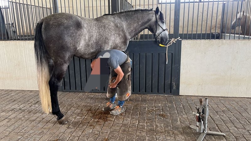 Edad: 6 y medio Carta ANCCE Altura: 1,66 aprox. Capa: Tordo Castrado De Finca Lo Tacón y Yeguada Bejar. Doma Clásica. Cesiones, apoyos, espaldas y grupa. Empezado a hacer cambios. Salidas al campo. Iniciado a la grupa.