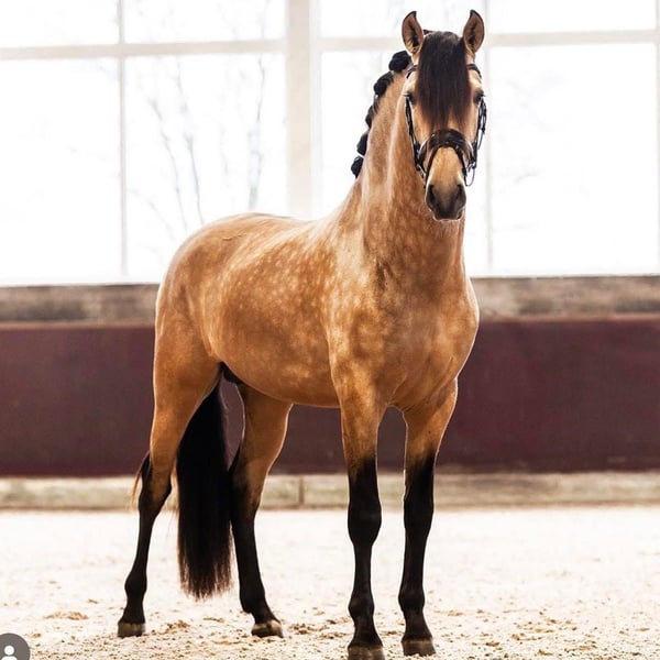 ✨ Cervantes JF – 5-Year-Old PRE Gelding ✨ A true eye-catcher with presence and character! This handsome gelding (1.67 m) competes at L/M level, easily performs a clean flying change, and shows great potential for higher-level work 💫 💎 Easy to load 💎 No tension or nervousness typical of Spanish horses – you can really sit comfortably! 💎 Calm at the blacksmith and well-behaved 💎 Very sweet and loves attention 💎 PRE with full registration and in possession of the carta 💎 Pedigree: Bandolero MG x Hebreo XLIX x Califa XXXI 💎 Radiographically (including neck & back) and clinically approved for sport 📜 Full history known. Not suitable for inexperienced or nervous riders, but ideal for someone eager to develop his quality and potential! Call or message: +31628590064