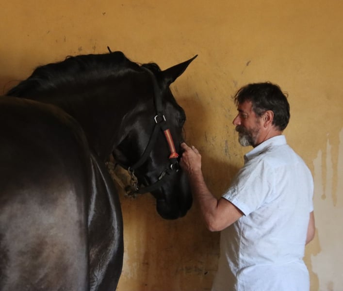 Are you looking for a leisure horse to enjoy to the fullest? Then this spectacular 6-year-old castrated PRE may be your ideal companion. Standing at 16.9 hh, he has a solid foundation in dressage and already performs piaffe changes, which can be further refined. Additionally, he enjoys outings in the countryside, making him a very versatile horse. In summary, a leisure horse with striking presence, an exceptional temperament, and all the qualities needed to deserve a five-star home.