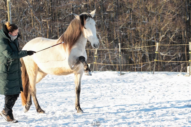 6 jähriger Wallach im besonders hellen Bayo Ton. Im Sommer cremefarbendes Fell, im Winter fast weiß. Geritten in den Basics (A- fertig/Anfänge L-Lektionen). Start in die Seitengänge und einfachen Gallopwechsel. Spanischer Schritt vom Sattel, wie auch vom Boden aus. Luft nach oben, jedoch fehlt die Zeit um es aktuell zu fördern. Er ist nicht ausschließlich für Anfänger oder schwache Reiter geeignet. Junge Mädchen mit Talent und Können sind kein Problem. Er bringt Charakter und tagesbedingt „Go“ mit. Er deckt große Reiter sehr gut ab, da er jetzt schon stark im barocken Stiel steht. Reiterin auf den Fotos 184cm Groß. Er selbst hat ein Stockmaß von 1,60m. Mit 1 Jahr wurde er aus Valencia importiert. Militärische und Cartujanische Linien im Stammbaum enthalten. Keine Allergien, keine OPs,…. Beherrscht zirzensik Elemente- Anfänge der Piaff, Kompliment, Seitengänge Trab,… Er lässt sich gut über Gewicht reiten. Er besitzt im Trab Campaneo, welches je nach Tempo mehr oder weniger ausgeprägt sichtbar ist. Jedoch macht es ihn auch „sitzbequemer“. Unter folgenden Link siehst du seine Abstammung. https://www.lgancce.com/lgpreancce/asp-publico/arbolGenealogicoPRE/ConsultarArbolGenealogicoPRE.aspx?ID=AxawRK0rW/U= Er steht auf dem Anhänger wie ein Profi, beim Verladen fehlt ihm manchmal die Routine. Er steht beim Tierarzt / Hufschmied brav und ruhig, war aber bisher immer Barhuf unterwegs. Er geht alleine ins Gelände, kennt Trecker, Autos, Hunde,… Pro Ritt erhebe ich eine Gebühr von 25€. Bei schlecht Wetter, bin ich auch gewillt, ihn zum Probereiten, in eine Halle zu fahren. Vieles an Equipment vorhanden, welches mit erworben werden kann, aber nicht muss. Wir könnten ihn auch in sein neues Zuhause fahren, da wir einen eigenen Anhänger besitzen. Sein Halbbruder zeigt die guten Anlagen im barocken Reiten und in der Zucht im Gestüt Floggensee als Cremello. Der Vater „Epon de Vale“ war sehr gefragt und viel im Deckeinsatz in Spanien. Ganz klar, Platz vor Preis für das neue 7 Sterne Zuhause.