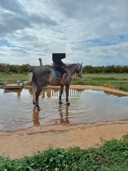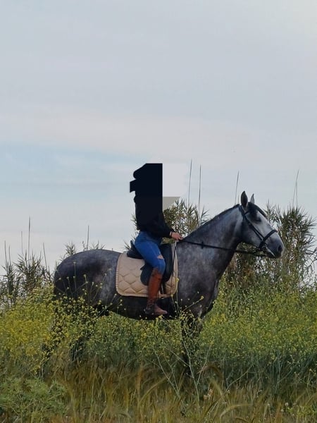 Age: 6.5 years ANCCE registration Height: approximately 1.66 m (16.1 hh) Color: Dapple gray Gelding From Finca Lo Tacón and Yeguada Bejar Dressage training. Lateral movements, leg yields, shoulder-ins, and collection. Has started to perform flying changes. Trail rides. Started working on hindquarters.