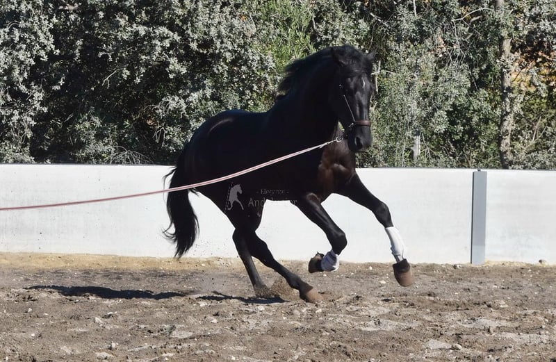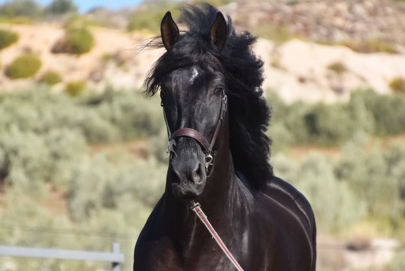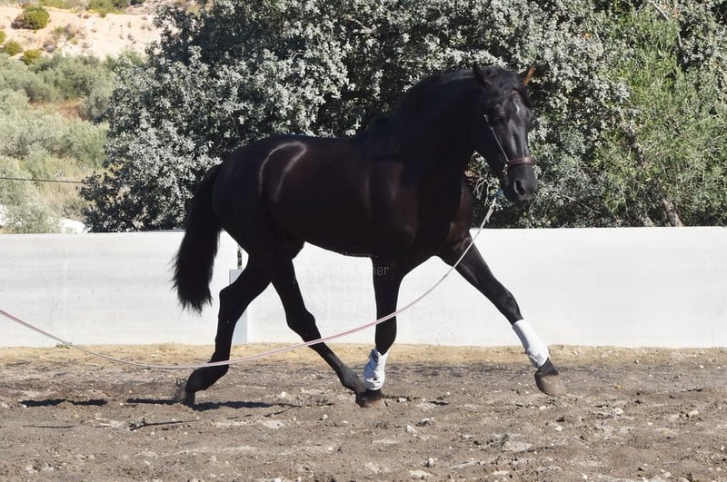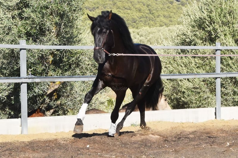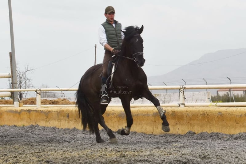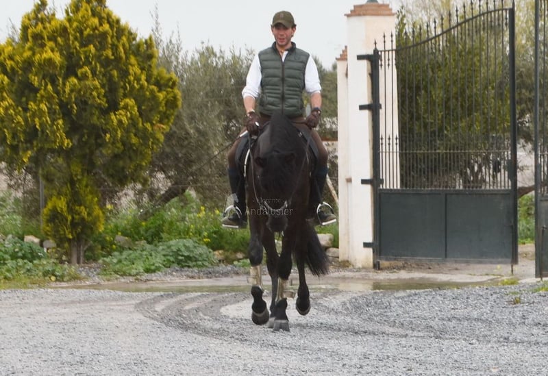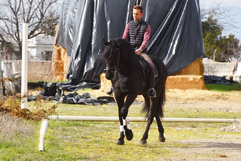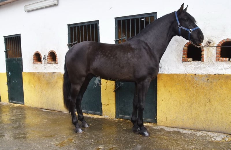 Gentle and calm temperament, attentive, curious, affectionate. Trained in basic gaits. Very tall. Located in France. Pedigree: Las Colonias de Pesqueril, Granda Losada. www.elegante-andalusier.com