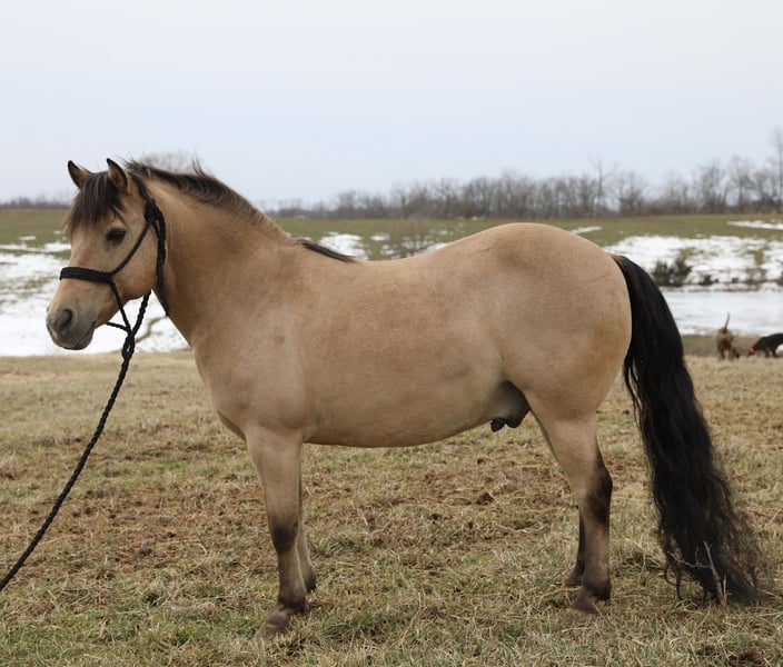 💎 𝐓𝐇𝐄 𝓓𝓲𝓪𝓶𝓸𝓷𝓭 𝐒𝐇𝐎𝐖𝐂𝐀𝐒𝐄 💎 Happening now thru MONDAY | FEBRUARY 23rd - Available EXCLUSIVELY on HorseBid's website! For more details and to register visit: www.Horsebid.com CONSIGNOR CONTACT: JS Quality Horses 606-748-0066 LOCATION: Wallingford KY BREED: Quarter Pony REGISTERED: No REGISTERED NAME: Rocky COLOR: Buckskin HEIGHT: 13.1 AGE: 12 GENDER: Gelding We are proud to introduce “Rocky” , standing 13.1 hands and 12 years young, this fancy guy is sure to get you noticed wherever you may go! Rocky is not your average pony, and to be fair he identifies as a big horse in a small horse’s body. He has more riding ability and talent than most big horses, and always keeps that good minded, puppy dog personality ! Rocky has been in the same family for years, and it’s just time he goes on to teach another kiddo what riding is all about ! “Loyal, reliable, and kind “ are three words that come to mind when I think of rocky, no matter the weather or the time that has passed Rocky is the same pony no matter what. Don’t want to walk 10 acres to find your new best friend ? Good your in luck! Rocky will come right to you, and enjoys being wherever his new friend is ! Rocky is easy, no matter what aspect we are referring to, Rocky stands for the farrier, stands to be saddled, stands to be mounted, clipped, bridled,and bathed. Rocky is broke like daddy’s ranch horse, Rocky has a one hand neckrein, he slides to a stop on whoa, he will turn around like a broke horse should. Rocky catches his leads and will do flying lead changes, with ease. No bridle ? Saddle ? Don’t fear , Rocky got you covered ! Pull Rocky’s bridle off and ride him anywhere, he’s as handy as a pocket watch ! Rocky has been roped on, and has drug small steers, he’s also been roped out of the box on the heel and head side, on slower calves as well. Rocky tracks good and has a lot of cow sense to him. Got a little cowgirl in mind for Rocky ? We are glad to hear because not only does Rocky love to be brushed and loved on, Rocky also enjoys the barrels and poles or having his hoofs painted, he will gladly spend time with his partner and enjoy every second of it ! Rocky has been used to gather and sort cattle, and will go anywhere asked of him, there’s not a creek to deep or a hill to steep , he’s as sure footed and good minded as they come. Rocky is not only just a pony, he’s part of the family and we hope his new adventure in life will Appreciate him and spoil him like he deserves ! If your wanting a honest , loving, flashy, talented kinda guy, look no further rocky is ready for his new chapter and we hope you choose him !