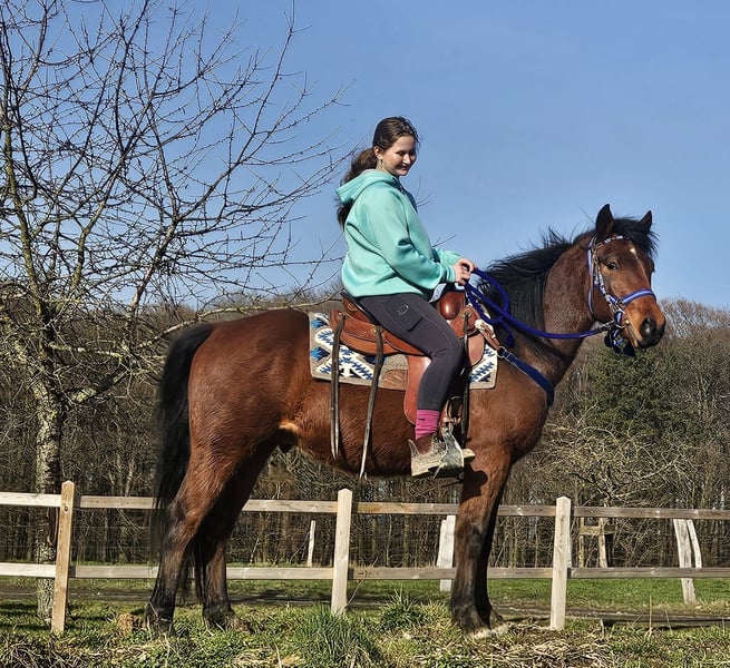 Quarter-Mix-Wallach „Shorty“ – jung, menschenbezogen - Traumhaftes Familienpony Eckdaten: • Name: Shorty • Rasse: Quarter-Mix • Geschlecht: Wallach • Alter: 4 Jahre • Stockmaß: ca. 1,46 m • Ausbildungsstand: angeritten • Preis: 5900,- Zum Verkauf steht dieser charmanter Quarter-Mix-Wallach „Shorty“ ein junger, talentierter Wallach mit bestem Charakter und einem offenen, menschenbezogenen Wesen. 🐴 Shorty ist: – super menschenbezogen und freundlich im Umgang – brav, neugierig und sehr lernfreudig – ruhig und gelassen – kennt Kinder, Landmaschinen und das Hofleben – beim Anreiten kooperativ, motiviert und konzentriert bei der Sache – bleibt auch in neuen Situationen cool und aufmerksam – sucht einen Menschen, der Freude daran hat, ihn weiter zu fördern und gemeinsam mit ihm zu wachsen Mit seiner ausgeglichenen, vertrauensvollen Art und seinem klaren Kopf bringt Shorty beste Voraussetzungen mit, um sich zu einem verlässlichen Freizeitpartner zu entwickeln – ob für Western-, Freizeit- oder Bodenarbeit. 🐎 Perfekt für: Reiter mit Gefühl und Geduld, die Spaß daran haben, ein junges Pferd weiter auszubilden und eine echte Partnerschaft aufzubauen. Unsere Pferde: – regelmäßig entwurmt – vom Schmied & Osteopathen betreut 🛍 Hofladen: Westernsättel, Trensen, Zubehör 🚛 Transport & Zubehör auf Wunsch günstig organisiert ✅ Unser Service: – 3 Monate Umtauschrecht – Proberitt: 35 €, jedes weitere Pferd 25 € (beim Kauf am selben Tag angerechnet) – 100 € Sofort-Rabatt bei Abholung/Transport am selben Tag – Persönliche & ehrliche Beratung 📞 Anfragen bitte nur telefonisch: 0171 – 4001968 🕗 Täglich erreichbar: 8–20 Uhr ⚠️ Keine E-Mail oder WhatsApp ⚠️ Alle Angaben ohne Gewäh9