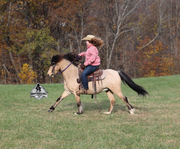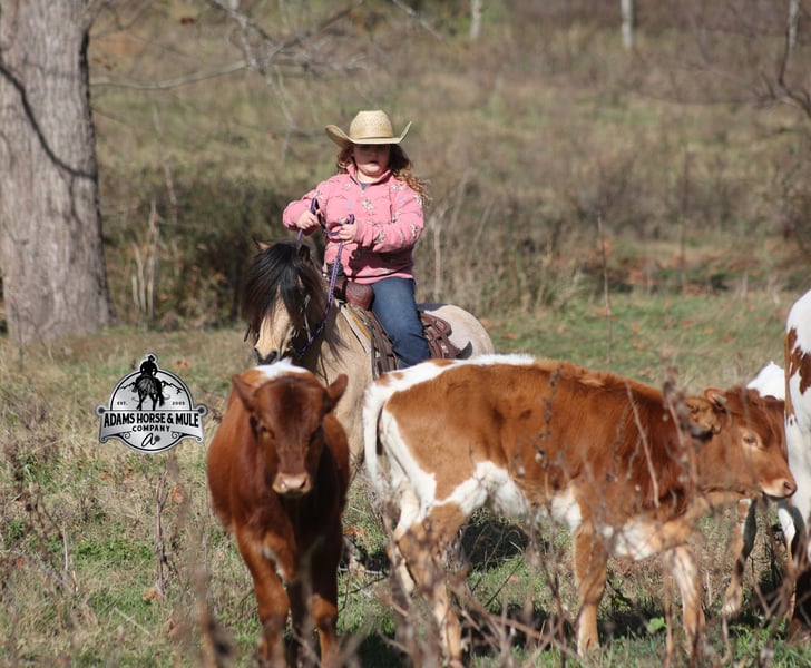 𝐀𝐝𝐚𝐦'𝐬 𝐇𝐨𝐫𝐬𝐞 & 𝐌𝐮𝐥𝐞 𝐂𝐨𝐦𝐩𝐚𝐧𝐲'𝐬 ✷𝑬𝒗𝒆𝒓𝒚 𝑴𝒊𝒍𝒆 𝑨 𝑴𝒆𝒎𝒐𝒓𝒚✷ 𝐄𝐗𝐂𝐋𝐔𝐒𝐈𝐕𝐄 𝐒𝐀𝐋𝐄 Happening now thru MONDAY | FEBRUARY 2nd - Available EXCLUSIVELY on HorseBid's website! For more details and to register visit: www.Horsebid.com CONSIGNOR CONTACT: Adams Horse and Mule Company 606-308-2461 LOCATION: Mt. Vernon, KY BREED: Quarter Pony REGISTERED: No COLOR: Buckskin HEIGHT: 11.2 AGE: 5 GENDER: Gelding One of the bittersweet things about having children is seeing them grow up before your eyes and as I have come to find out they grow up too quickly! From first steps to running wild, from first ride to first pony and now, as much as it breaks dad’s heart, we are at that crossroads with Lynnlee of going from first pony (Keychain) to first horse. Keychain has been Lynnlee’s first pony that she rode all on her own, her “Big Girl” pony. The one that we never worried about when she headed out alone, the one that she just went and caught on her own, spent hours brushing, braiding, putting mane and tail products in his mane (they worked as you can see). Keychain has been her real life Barbie pony that she has played with virtually every day after school and all summer long. We could never thank this pony enough for all that he has done for building Lynnlee’s confidence as a rider, Keychain is a once in a lifetime pony, a true unicorn… Keychain is a 11.2h, stout built, 5 year old, quarter pony and he is that amazing buckskin color! He is every little boy’s or little girl’s dream come to life! Keychain has been Lynnlee’s whole world for the last two years and now it’s time to move him along to another family and let him do his job of teaching some other kids how to ride while setting them on the path of many years of success in the saddle. Keychain has the experience that is needed and he is the perfect size to carry any size kid. (For reference) Lynnlee is 8 years old and 4 foot 9 inches tall. Keychain is responsible for millions of smiles, thousands of giggles, and countless miles and hours of fun with his best pal Lynnlee… all while doing it flawlessly, completely safe and as close to perfection as a horse can get. Even early on before Keychain gave Lynnlee the confidence that she has now, he would tolerate her mistakes with the reins, he would never take advantage of her and was very patient. In no way, shape or form has or will Keychain ever be head strong or spoiled acting, he is ALWAYS super agreeable and easy going. Confidence comes easy with him as he is one hand broke, he neckreins around and goes anywhere that you point him, he walks quietly but moves out when asked. Keychain has the absolute best lope of any pony that I have ever saw, it’s like he just floats on air without touching the ground, so soft, so smooth, he takes the correct leads and will lope out of his tracks from a stand still. He just floats along slow and easy while on a complete loose/draped rein or with the reins dropped on the saddle horn. Keychain has been used at a couple different rodeos for pony rides and in one night we had over 100 kids of all ages ride him. He was a perfect gentleman and super patient with some of the special needs kids. He has been ridden through town, is traffic safe, ridden around cows and down the trails. He is a trail riding machine and will take the little riders safely anywhere that the adults can go… creeks, ditches, crosses logs, picks his way through deadfall or rocky paths… he is very sure footed and is not in a hurry! Keychain will ride out alone, leave the barn behind with no issues, will ride in the front of a group or way back behind everyone without a fuss. Keychain is the same horse whether ridden daily or if he is left in the stall or pasture for a few months during the winter. Keychain is very friendly and loves to be groomed, whether that is standing patiently for an hour so Lynnlee can braid every hair that he has or getting soaked with a hose and scrubbed with a half of a bottle of shampoo… Keychain is the perfect kid’s horse, with his patients, confidence, rideability… do your little one a favor and make sure that Keychain’s next home is with them! For more info call 606-308-2461.