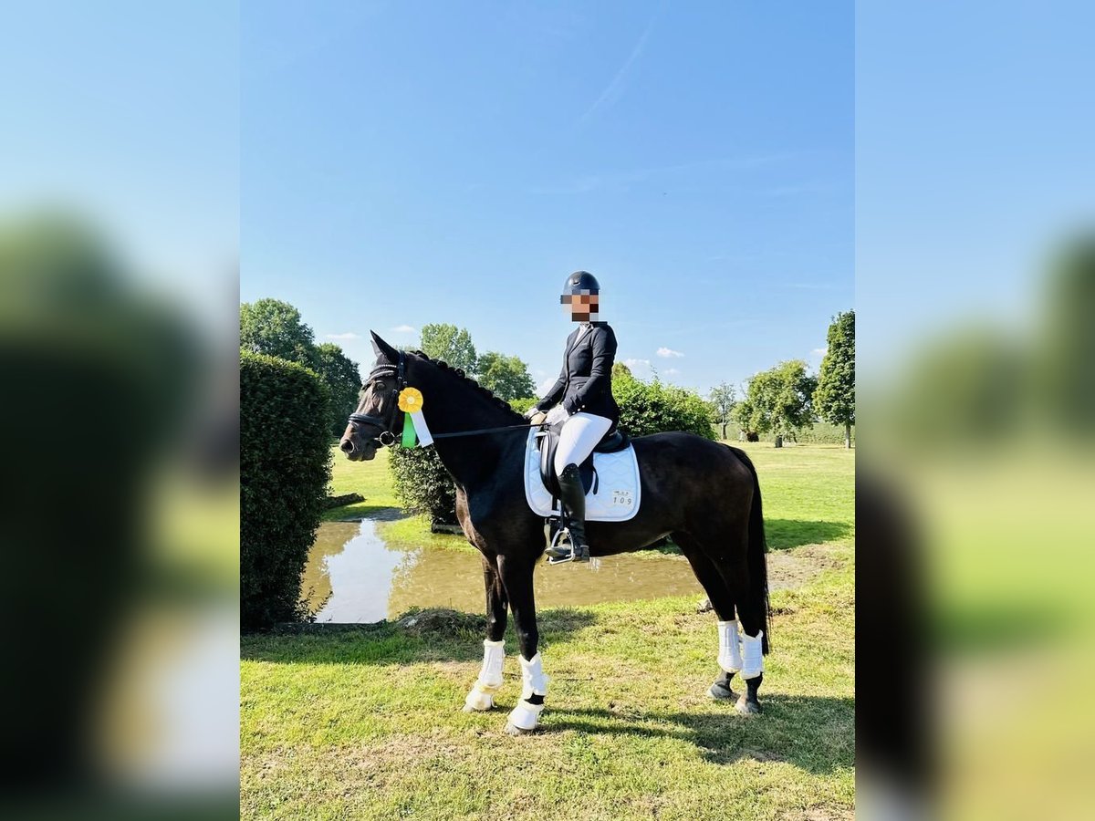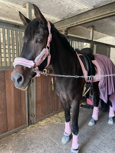 Püppi ist eine bildschöne dunkelbraune Rheinländerstute von Riccione, geboren im Mai 2012 und somit 14 Jahre alt. Sie hat ein Stockmaß von 1,64m und verfügt über drei sehr gute Grundgangarten. Püppi ist seit fast 6 Jahren in unserem Besitz und wir haben sie mit professioneller Unterstützung bis hin zur Klasse L ausgebildet. Sie ist mehrfach siegreich A* platziert und kann auch mehrere aktuelle A** und L-Platzierungen vorweisen. Unter dem Reiter zeigt sie sich sensibel, aufmerksam und leistungswillig. Sie ist allerdings kein Anfängerpferd und sucht einen neuen ambitionierten Reiter, der ihr Sicherheit gibt und sie weiter fördert. Wir geben sie nur sehr ungerne ab und auch nur wegen Zeitmangel auf Grund von Studium und Arbeit. So werden wir ihr leider momentan nicht mehr gerecht. Es handelt sich also nicht um einen Notverkauf und sie wird nur in beste Hände abgegeben. Aktuelle Röntgenbilder liegen vor, Videos auf Anfrage.