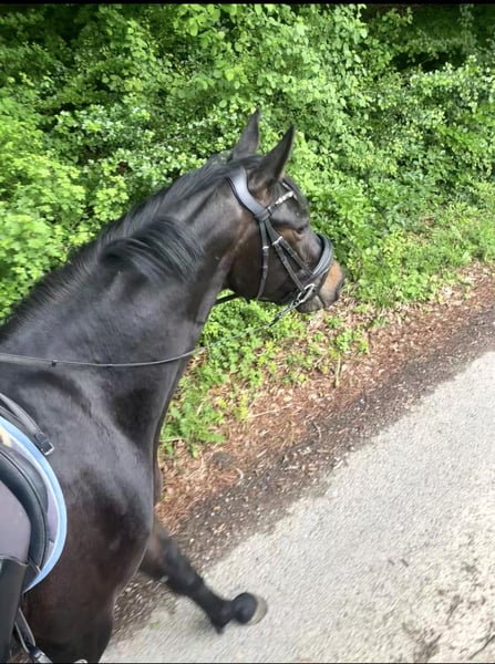 Elli est une jument hanovrienne de 4 ans issue directement du sang de V.d. Decken. Elle se distingue par sa grande facilité à monter, sa beauté et sa conformité, avec trois très bonnes allures naturelles. Elle possède également un très agréable tempérament, est très fine à la selle et légère en main, ce qui rend chaque séance d'entraînement simplement plaisante. Elli est parfaitement lucide et apprend très rapidement. Elle convient donc également parfaitement comme cheval pour jeunes cavaliers. Elle a été dressée de manière polyvalente et se montre détendue en groupe ou en solo lors des sorties en extérieur. Lors de ses premiers sauts sous la selle, elle a également montré beaucoup de talent, d’engagement et de plaisir. Elle vient directement du naisseur et a été élevée de manière conforme à ses besoins au sein d’un troupeau, ce qui en fait une jument très bien socialisée. — Eckhardt x Granikos x Sherwood — 1,62 m (16.1 hh) — 4 ans — Dressage A terminé — Non ferrée — En bonne santé (6 radiographies récentes sans anomalies disponibles) ‼️ Pour toute réelle intention, merci de me contacter au 0171/8353415 ‼️