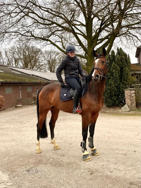 Zum Verkauf steht eine 6-jährige Stute, die bei uns geboren, selbst angeritten und mit viel Geduld und Herz ausgebildet wurde. Sie ist aktuell bis 1,15 m platziert und hat bereits ihr erstes 1,20 m Springen erfolgreich absolviert – dabei stets motiviert, ehrlich und mit viel Übersicht am Sprung. Im Umgang sowie unter dem Sattel ist sie durchweg lieb, rittig und unkompliziert. Sie lässt sich fein an die Hilfen reiten und gibt ihrem Reiter ein sehr sicheres Gefühl. Auch von jungen oder schwächeren Reitern ist sie problemlos zu bedienen, weshalb sie sich ideal als Mädchenpferd, Juniorenpferd oder für Umsteiger eignet. Eine Stute mit tollem Charakter, die Spaß an der Arbeit hat und sowohl im Turniersport als auch im Alltag überzeugt. Wer ein zuverlässiges, ehrliches Pferd mit Perspektive sucht, wird hier fündig.